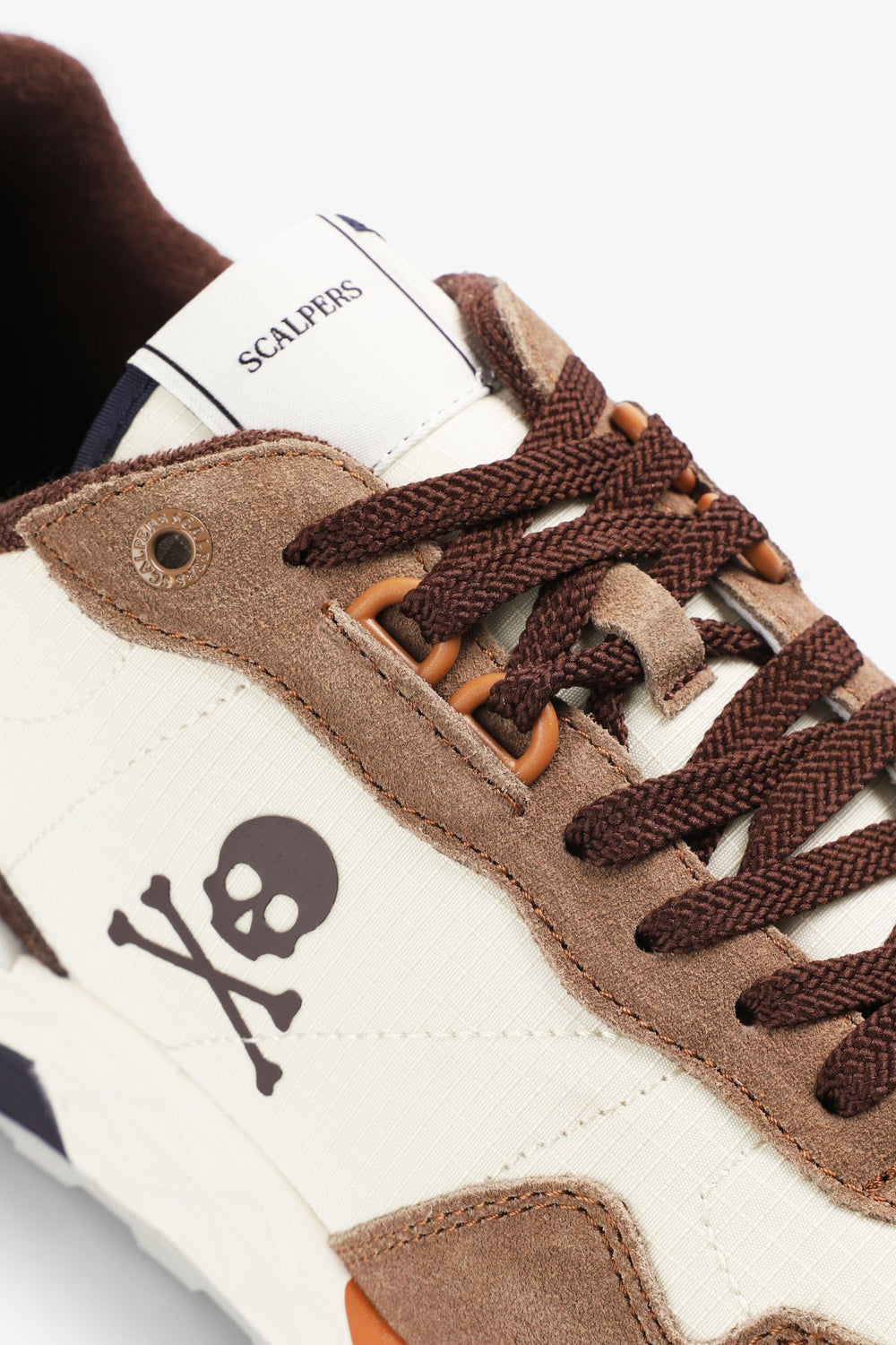 Sapatilhas com skull lateral e acabamento em camurça em contraste. Fecho com cordões em contraste. Calcanhar com pormenor de logótipo efeito de caucho em contraste. Etiqueta com logótipo na língua.