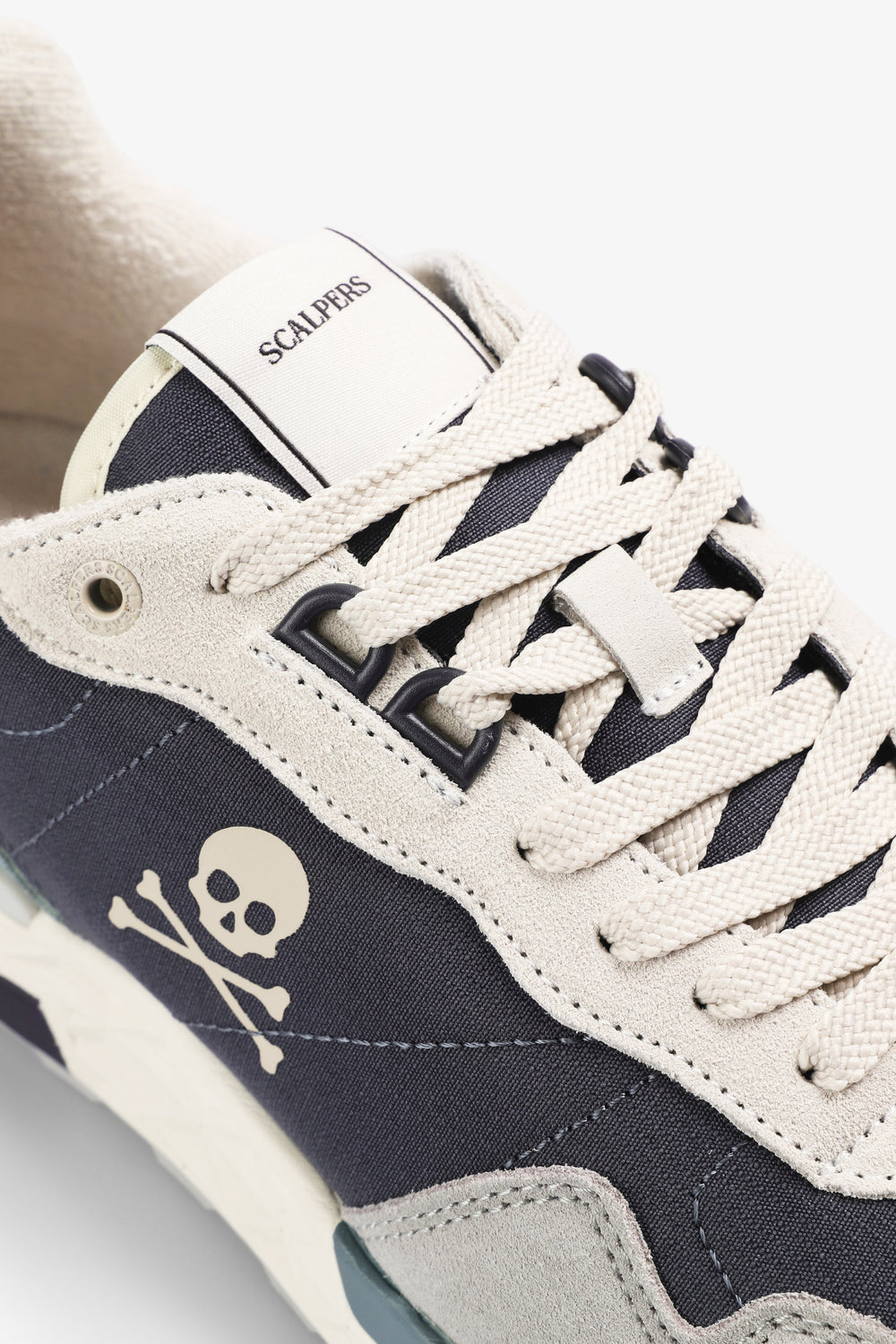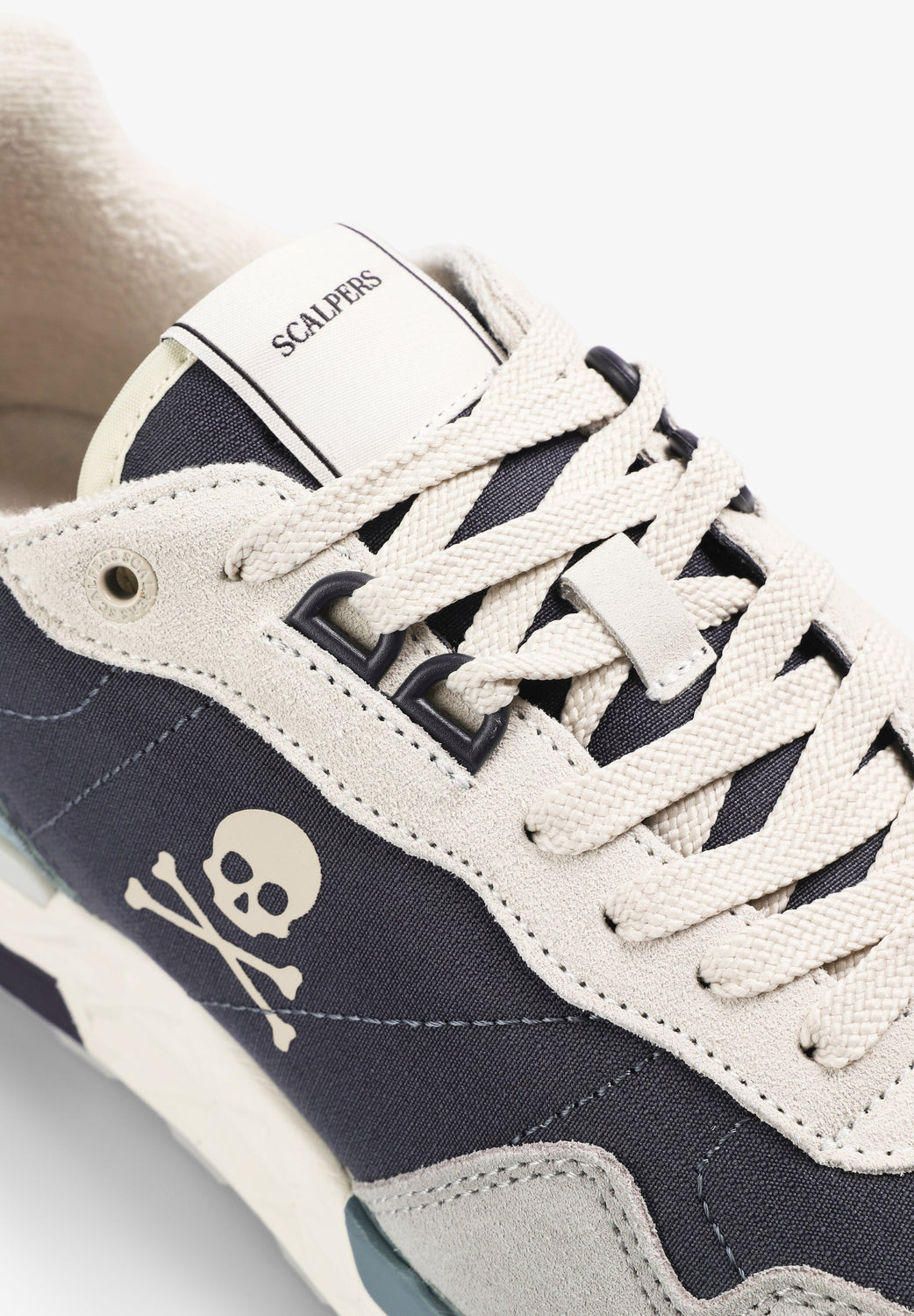 Sapatilhas com skull lateral e acabamento em camurça em contraste. Fecho com cordões em contraste. Calcanhar com pormenor de logótipo efeito de caucho em contraste. Etiqueta com logótipo na língua.