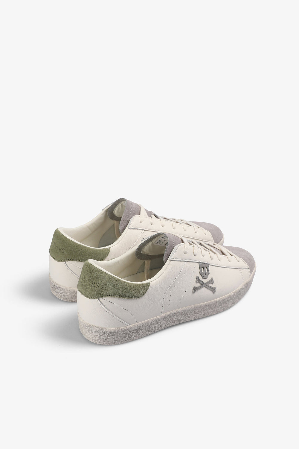 Sapatilhas com skull lateral em contraste confecionadas em pele. Fecho com cordões no tom. Língua e parte frontal em contraste. Sola de borracha. Pormenor em contraste no calcanhar e pormenor de logótipo no tom.