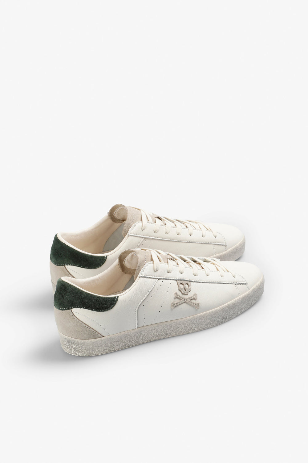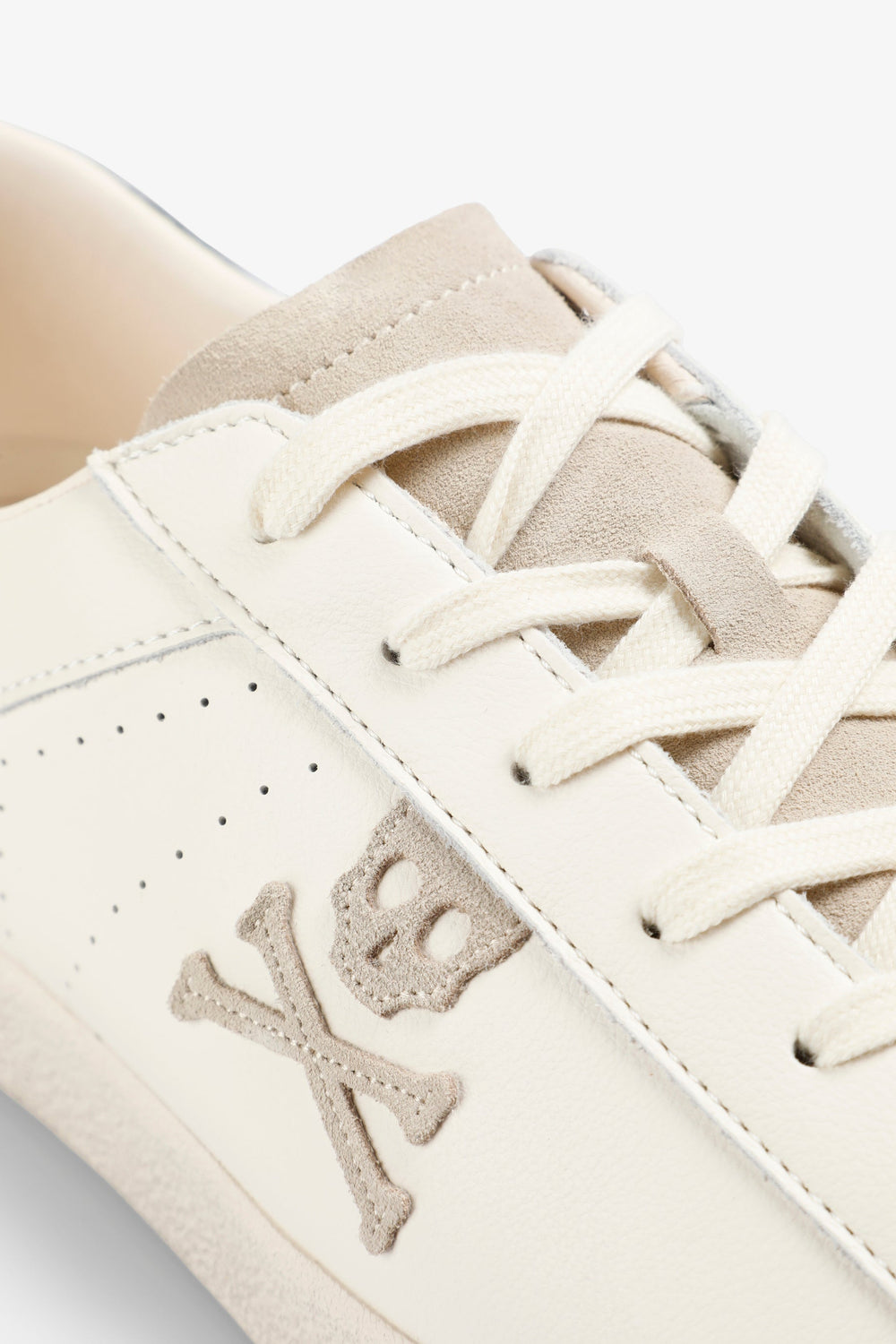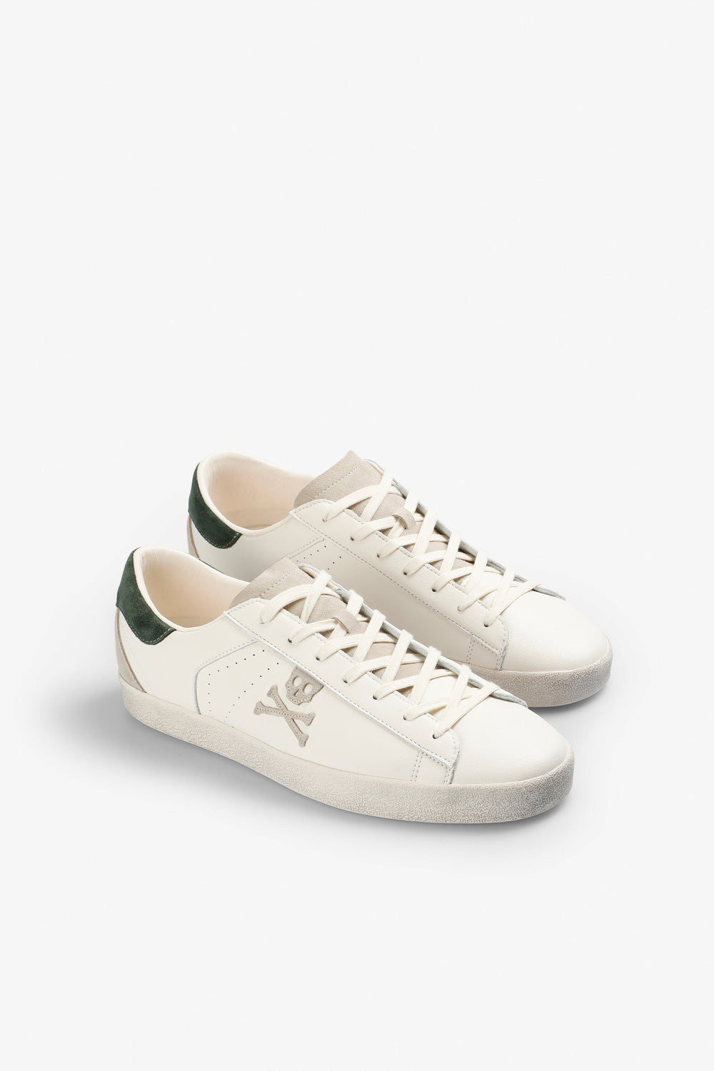 Sapatilhas com skull lateral em contraste confecionadas em pele. Fecho com cordões no tom. Língua em contraste. Sola de borracha. Pormenor em contraste no calcanhar e pormenor de logótipo no tom.