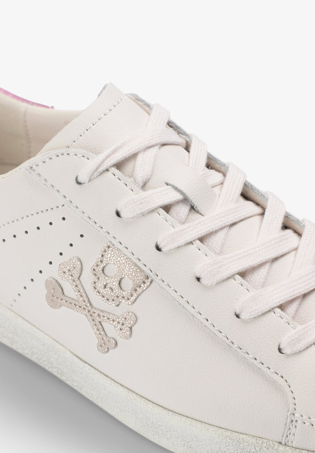 Sapatilhas com skull lateral a contrastar. Sola com efeito desgastado de caucho. Calcanhar em contraste com logótipo no tom. Fecho com cordões.