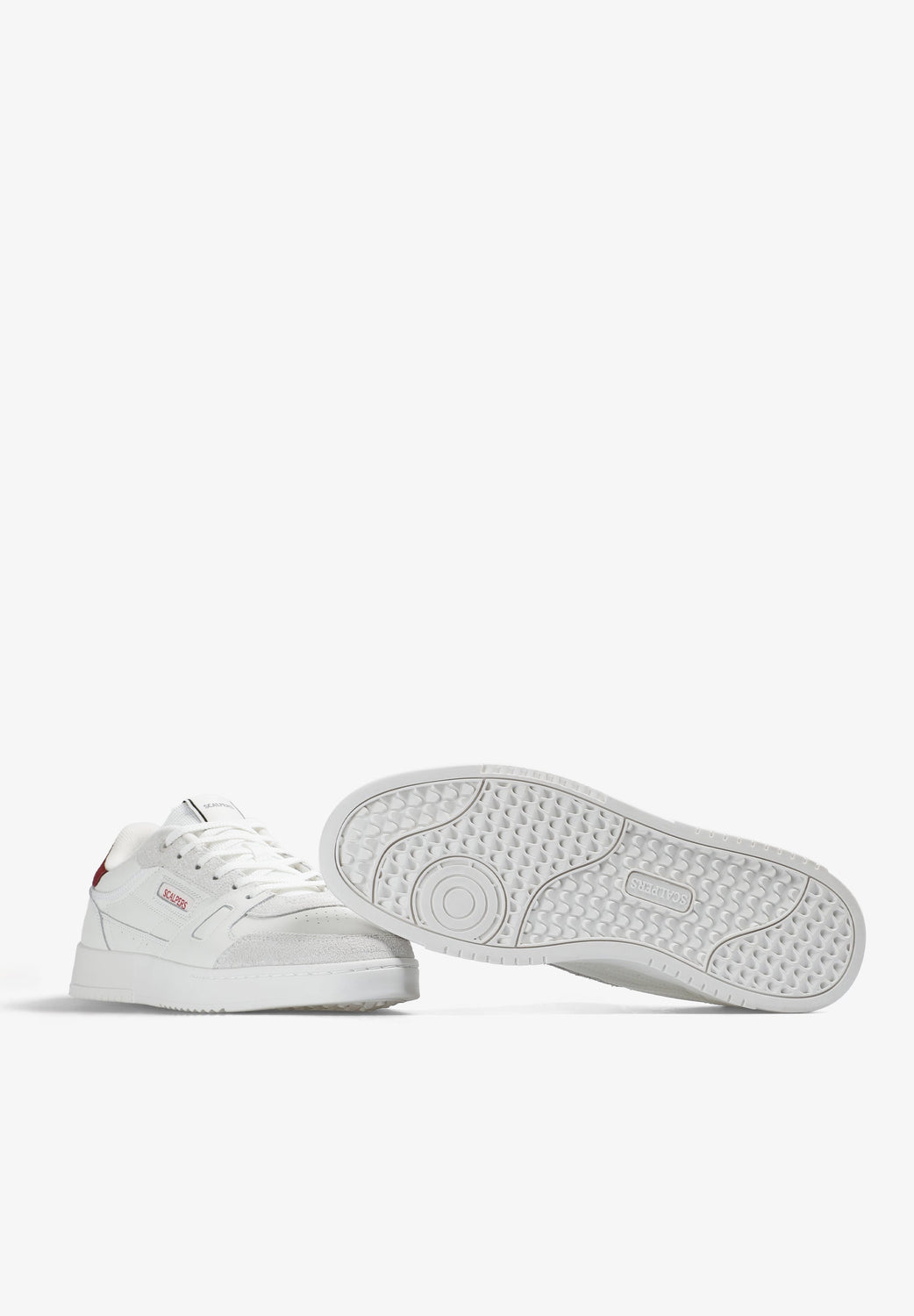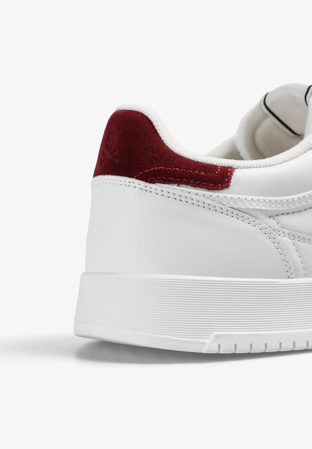 Sapatilhas confecionadas em pele. Sola de TPR em contraste. Pormenor no calcanhar e logótipo na lateral em contraste. Pormenor de etiqueta com logótipo na língua.