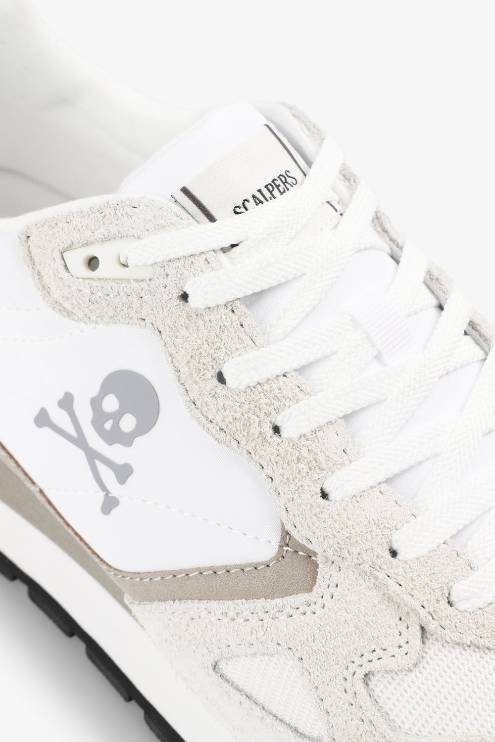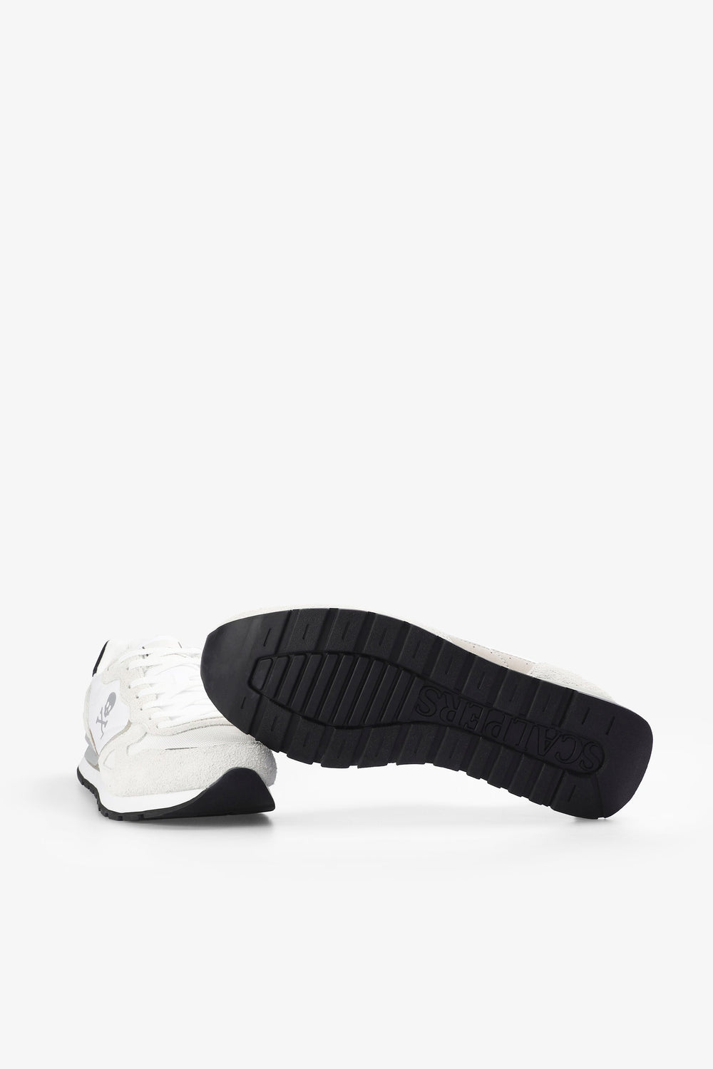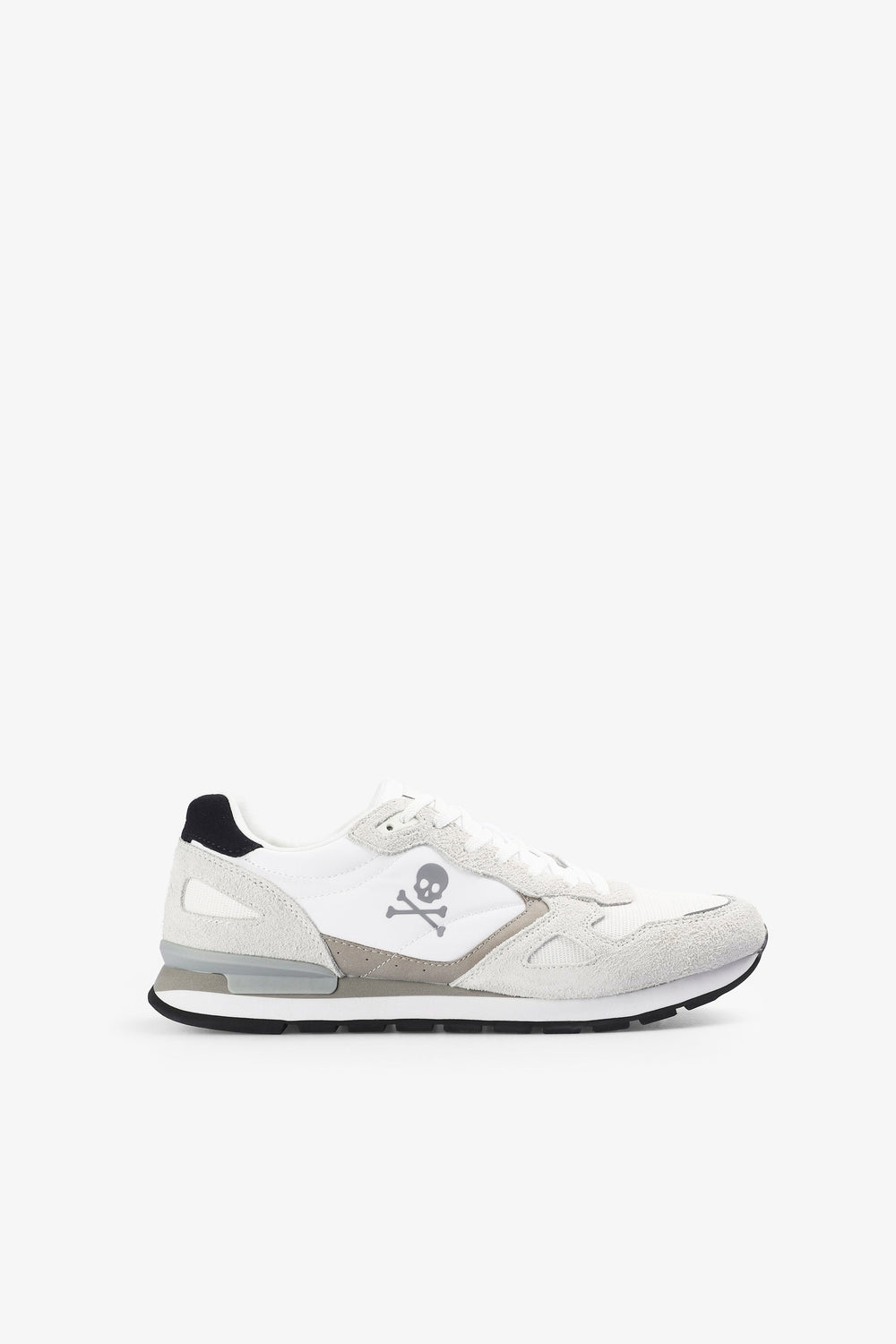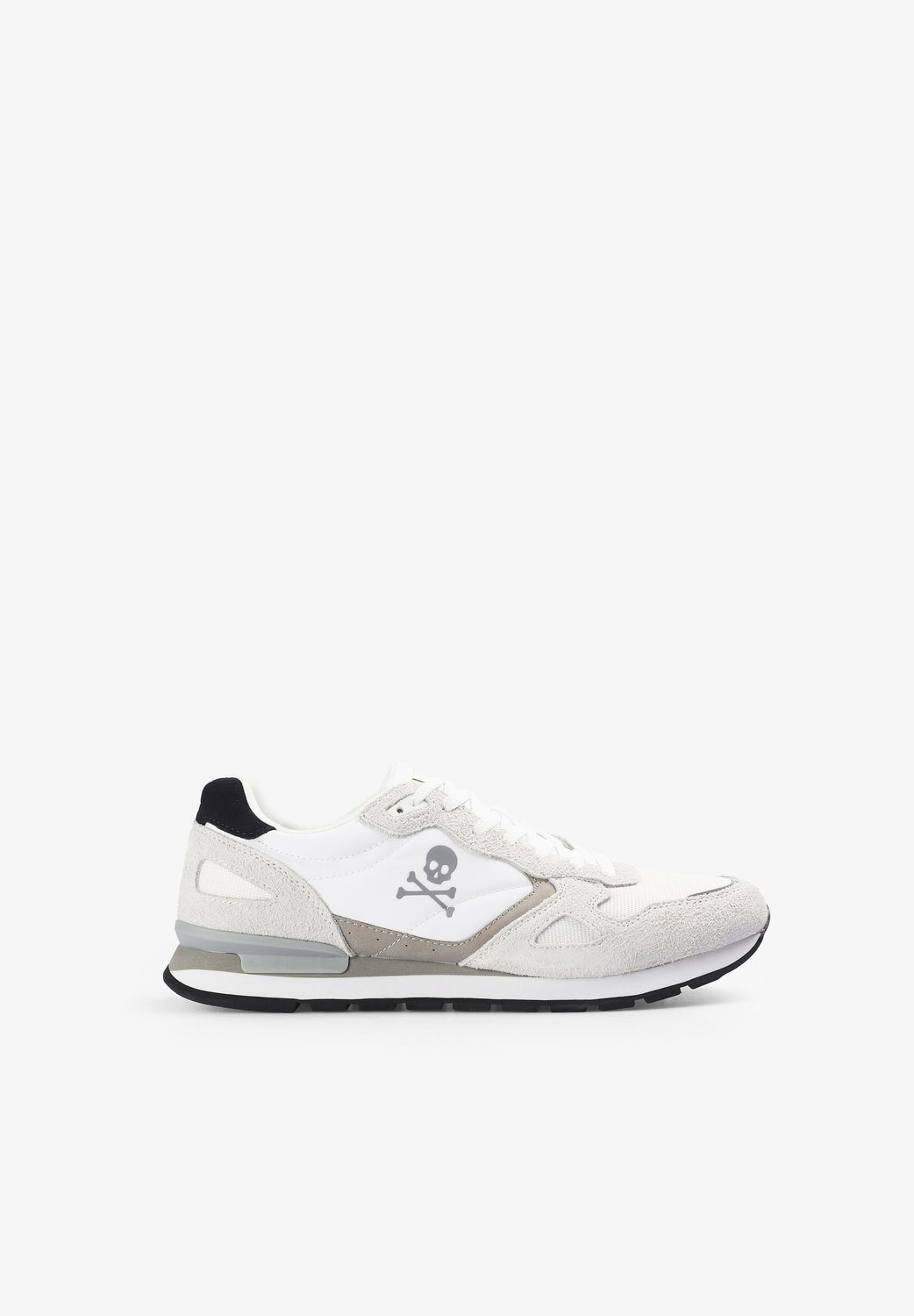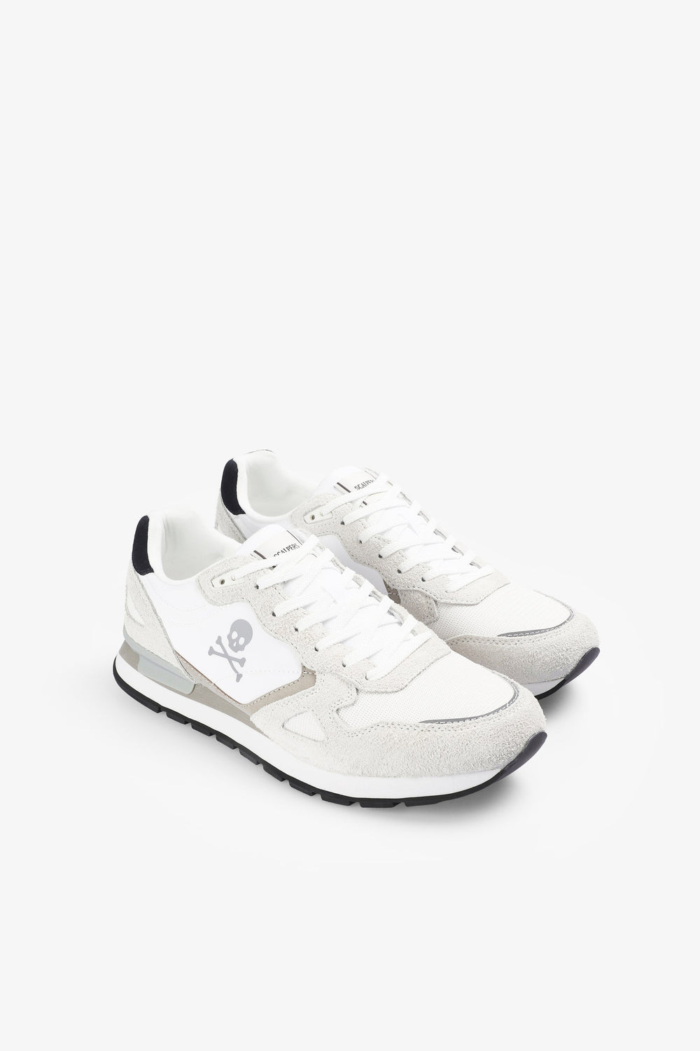 Sapatilhas confecionadas em pele. Fecho com cordões no tom. Sola de borracha e eva com estabilizador a contrastar. Skull impressa em caucho de alta densidade na lateral. Logótipo bordado no calcanhar.