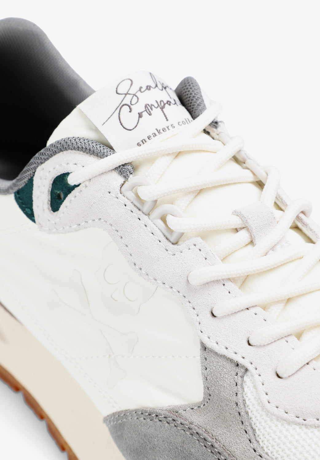 Sapatilhas confecionadas em camurça com skull lateral no tom. Sola de caucho e eva. Fecho com cordões no tom. Pormenores de acabamentos em contraste. Logótipo bordado no tom no calcanhar. Etiqueta com logótipo na língua.