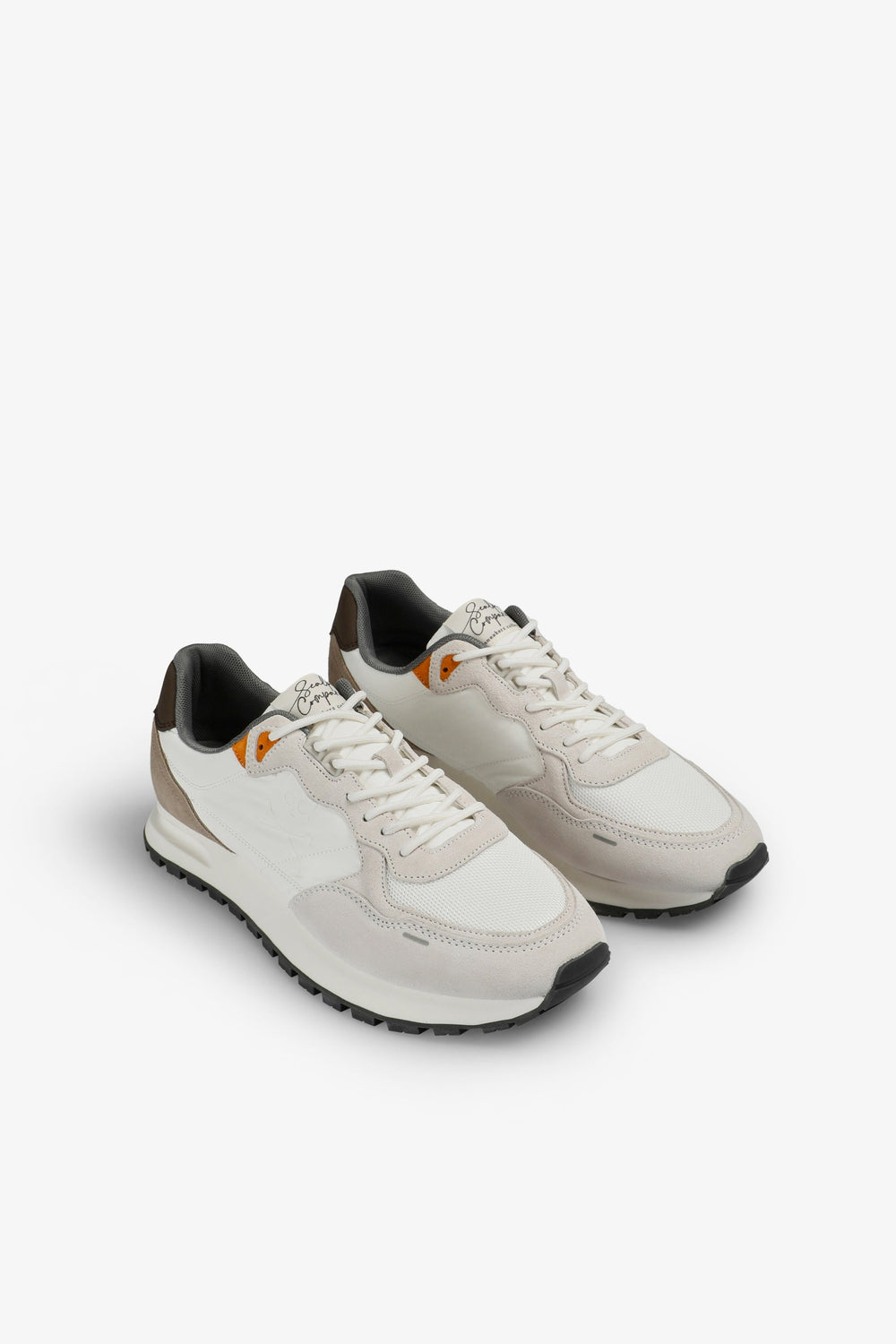 Sapatilhas confecionadas em camurça com skull lateral no tom. Sola de caucho e eva. Fecho com cordões no tom. Pormenores de acabamentos em contraste. Logótipo bordado no tom no calcanhar. Etiqueta com logótipo na língua.