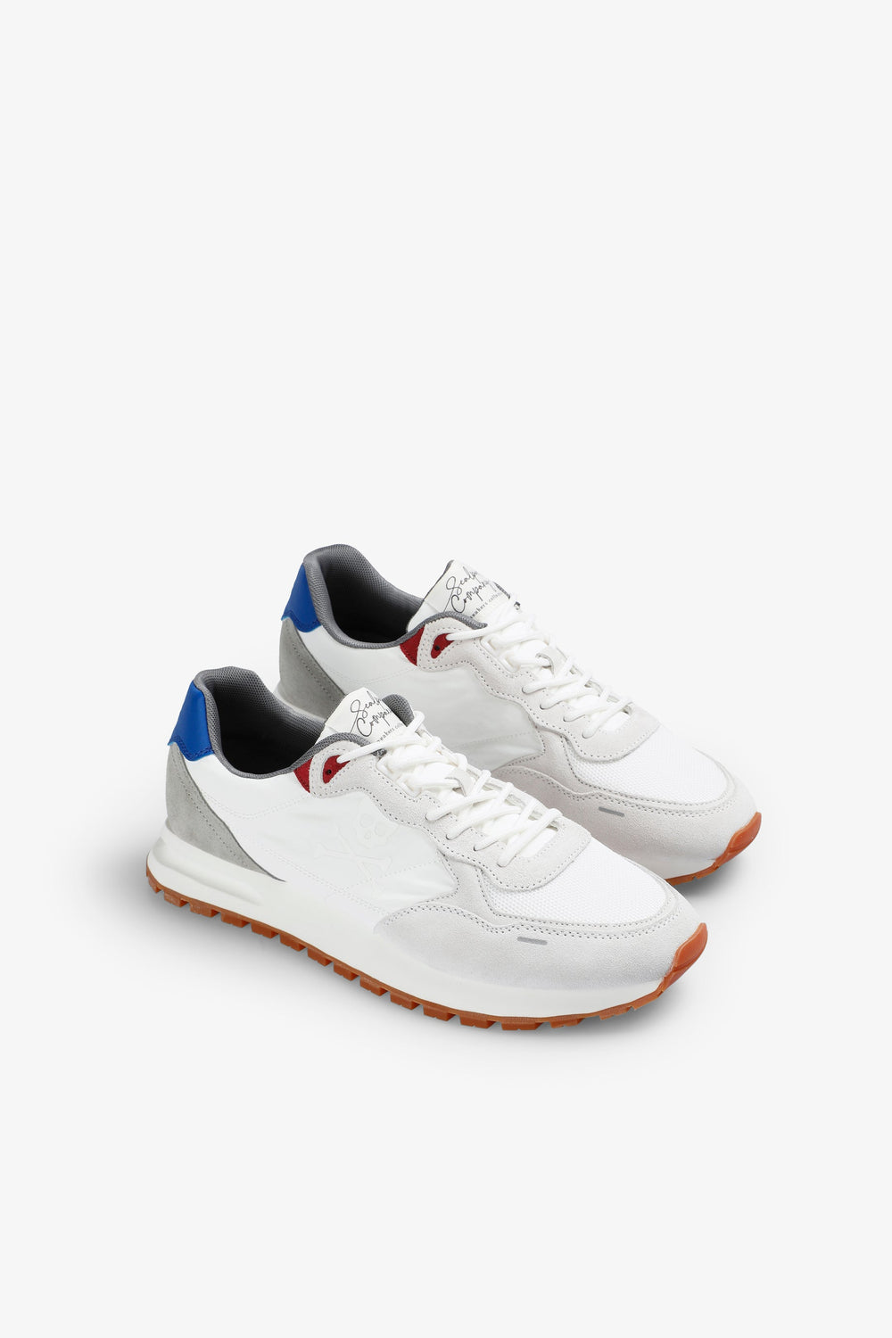 Sapatilhas confecionadas em camurça com skull lateral no tom. Sola de caucho e eva. Fecho com cordões no tom. Pormenores de acabamentos em contraste. Logótipo bordado no tom no calcanhar. Etiqueta com logótipo na língua.