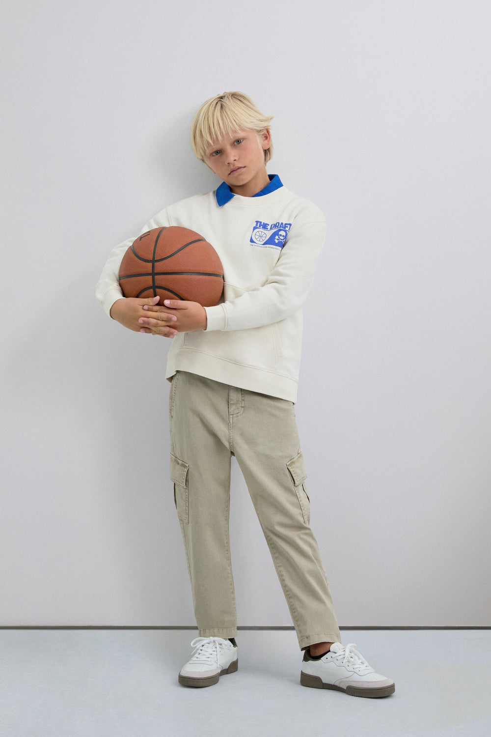 Calças cargo confecionadas em algodão BCI ligeiramente elástico. Regular fit, fecho com botão e zip e bolsos laterais. Presilhas na cintura e bolsos nas pernas com placket.