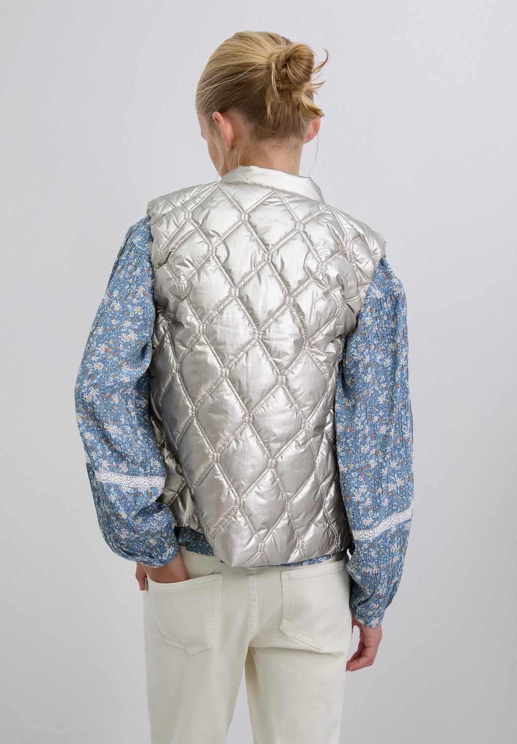 Colete acolchoado refletor. Fecho frontal com fecho zip duplo. Dois bolsos à frente. Remendo efeito de caucho com skull no peito. Pormenor de logótipo nas costas.