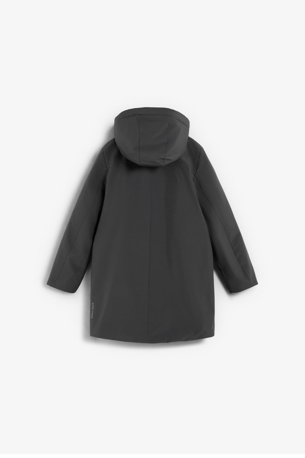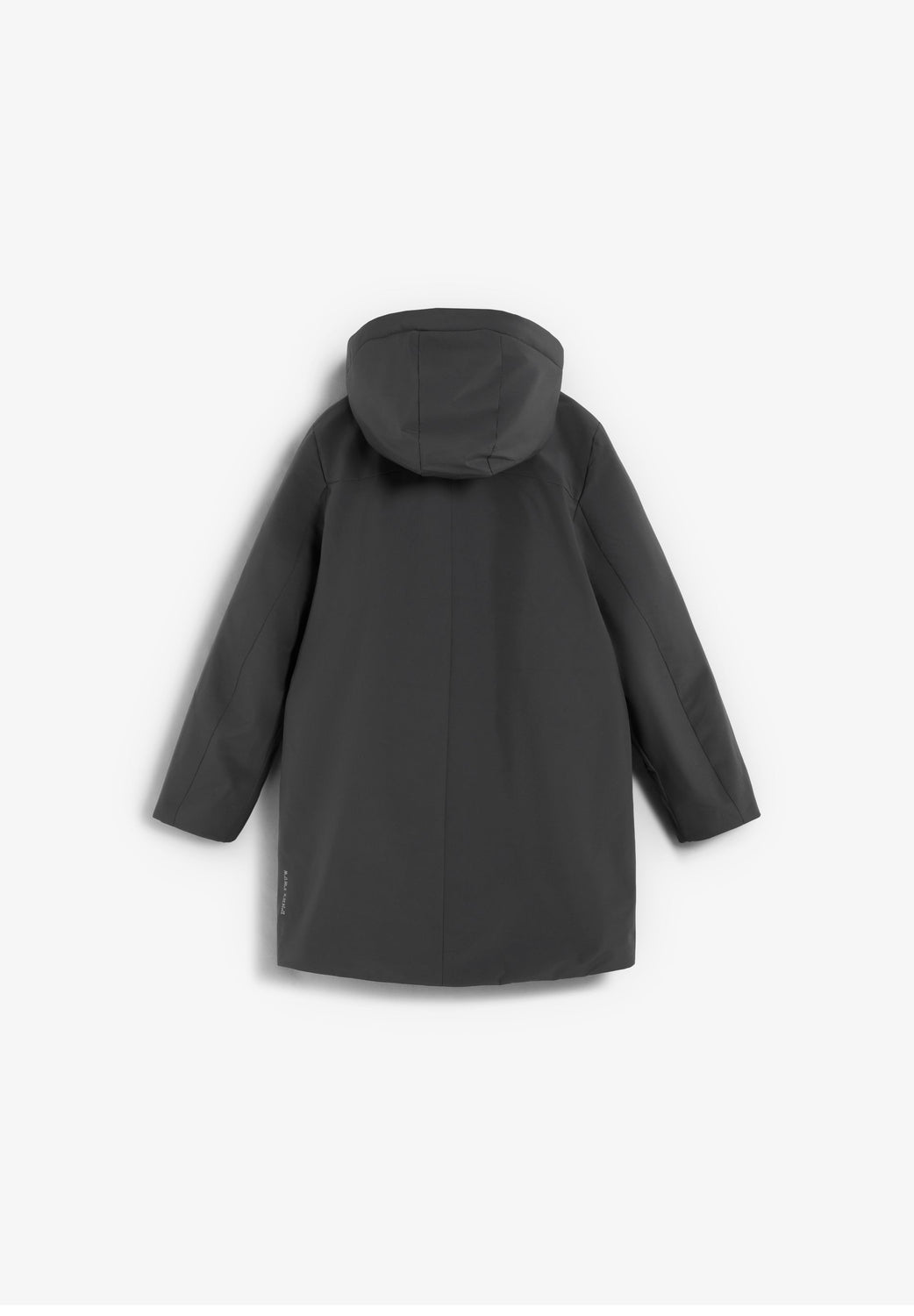 Parka comprida confecionada em tecido técnico recycled. Regular fit, fecho com zip termosselado e placket e gola com capuz. Manga comprida e bolsos com zip termosselado. Remendo engomado lateral.