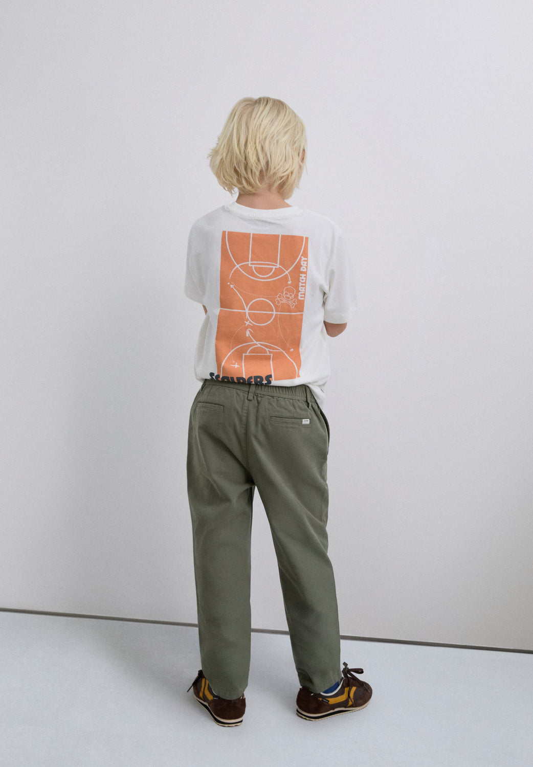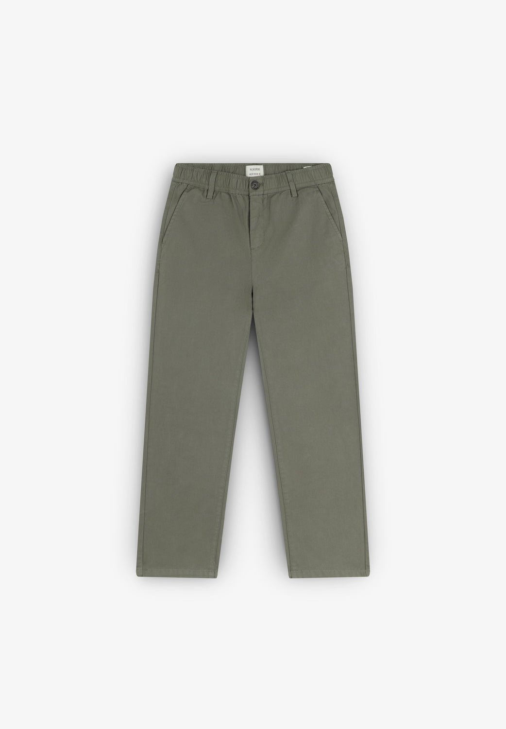 Calças chino confecionadas em 100% algodão BCI. Dois bolsos à frente e atrás. Fecho com botão e presilhas na cintura. Pormenor de etiqueta com logótipo no bolso.