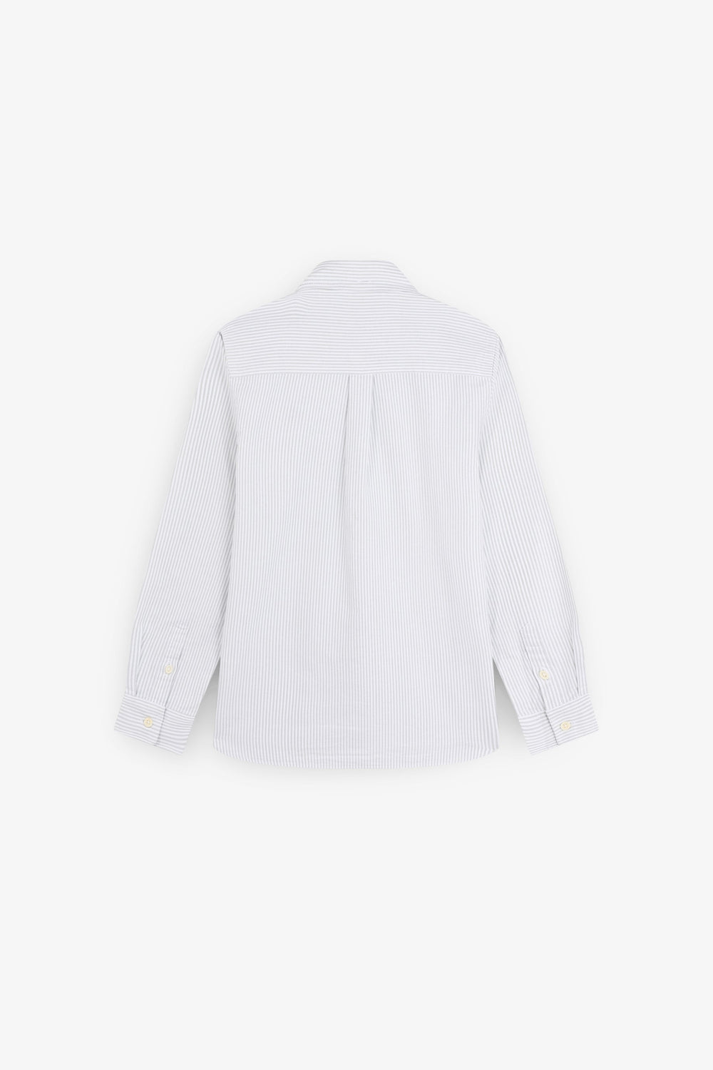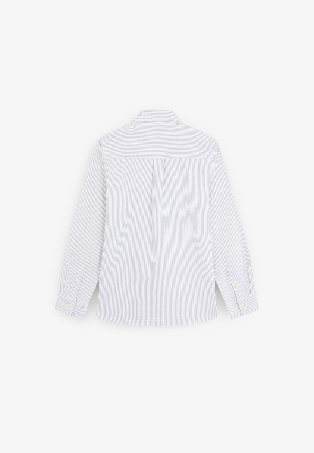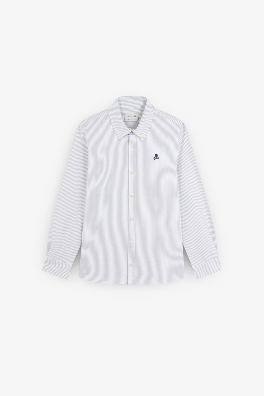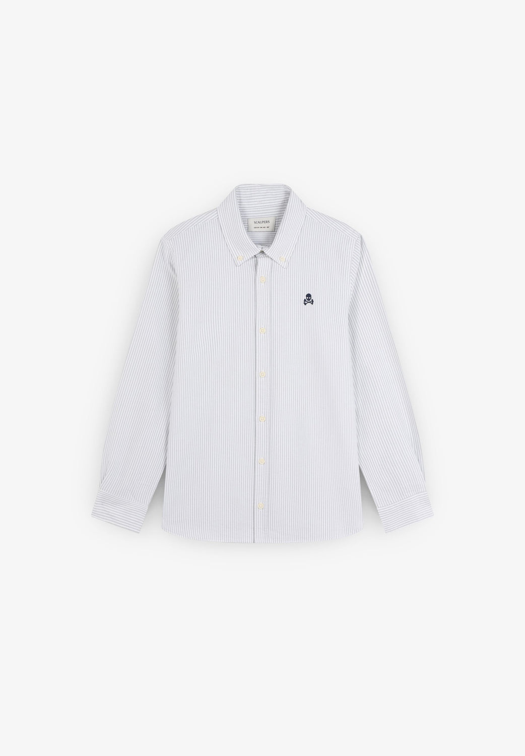 Camisa às riscas confecionada em 100% algodão BCI. Gola clássica, fecho com botões, regular fit, skull no peito em contraste. Acabamento de botões no punho.