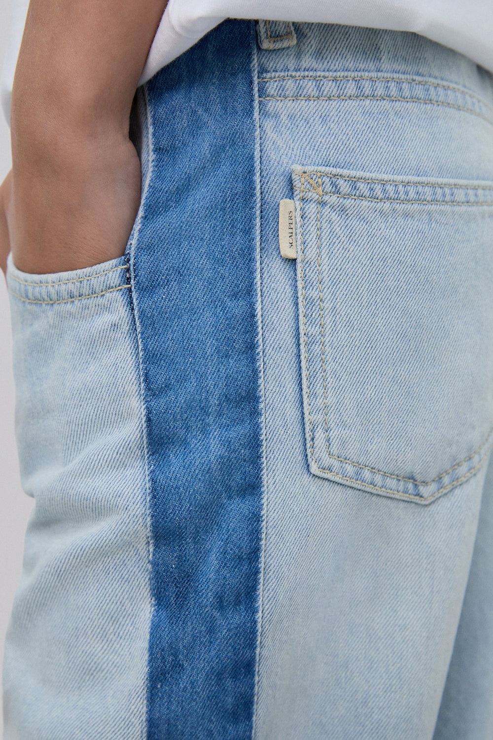 Calças wide leg confeconadas em 100% algodão BCI. Fecho com duplo botão e fecho de correr. Presilhas na cintura. Pormenor de costura em contraste na lateral. Forro interior 100% algodão.