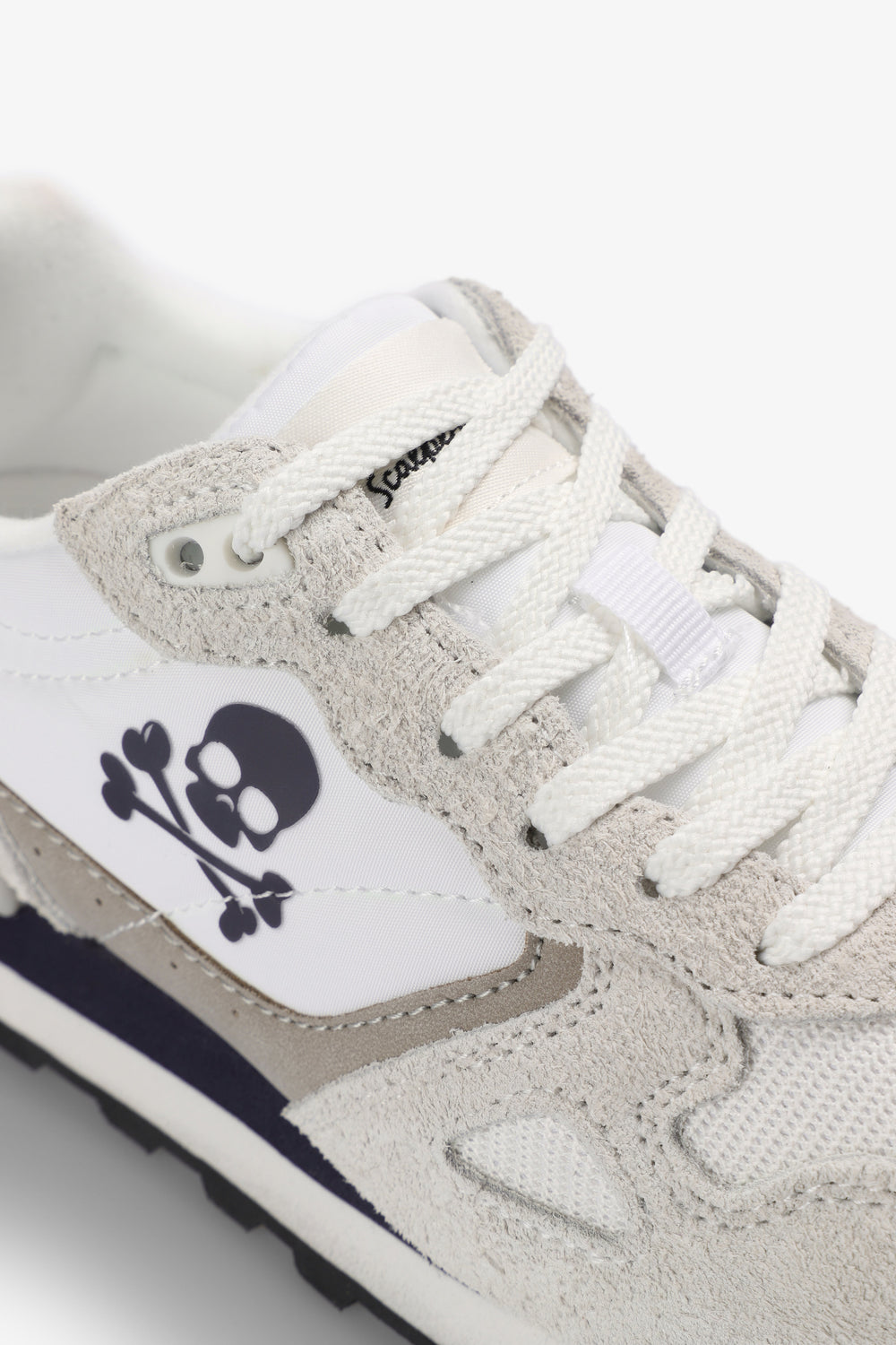 Sapatilhas confecionadas em pele. Fecho com cordões no tom. Sola de TPR e eva com estabilizador em contraste. Skull lateral em contraste.
