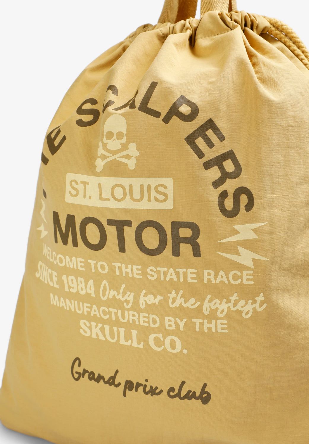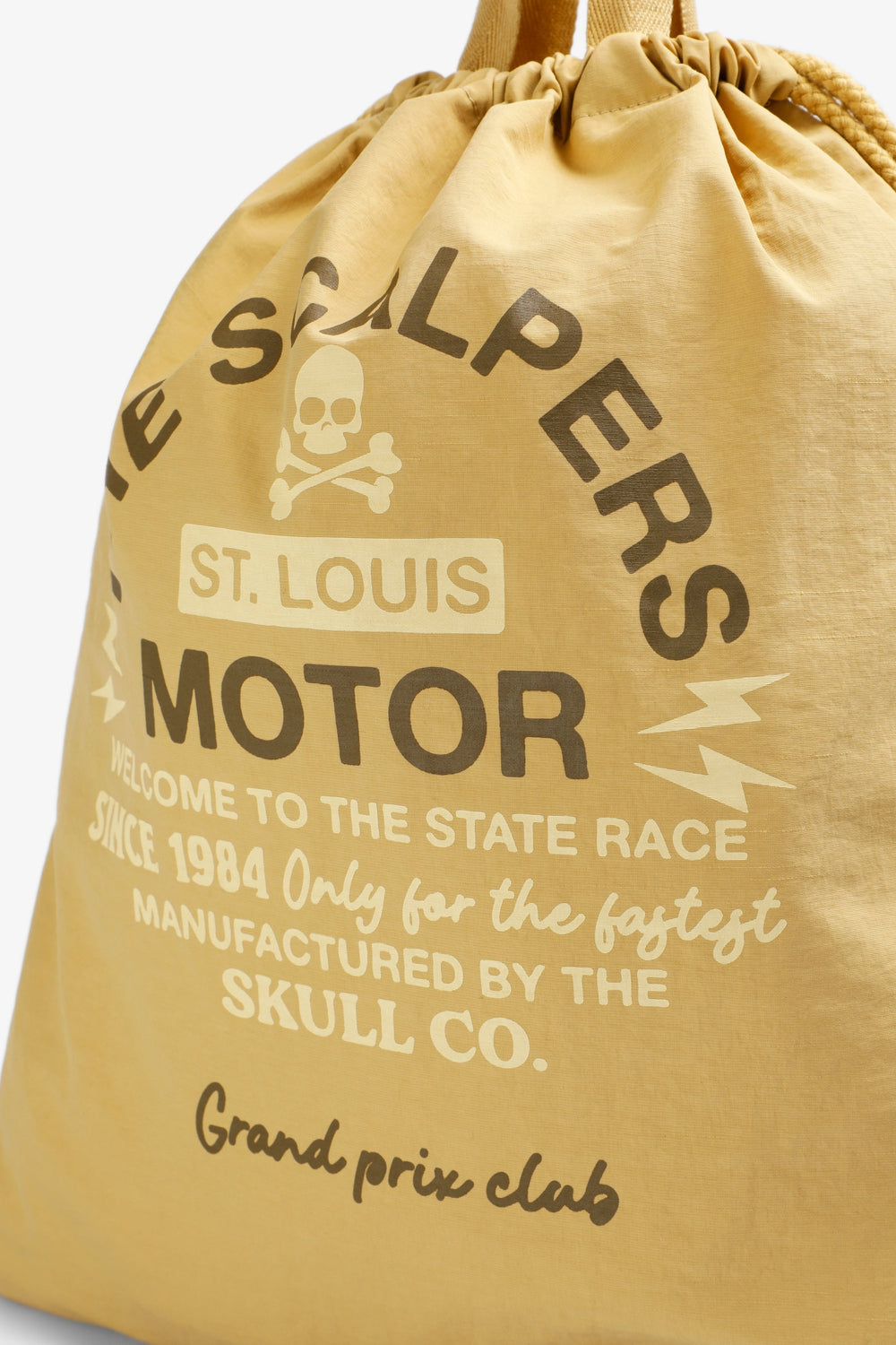 Bolsa leve sintética. Alça de mão. Dupla alça na parte de trás. Padrão frontal com logótipo.