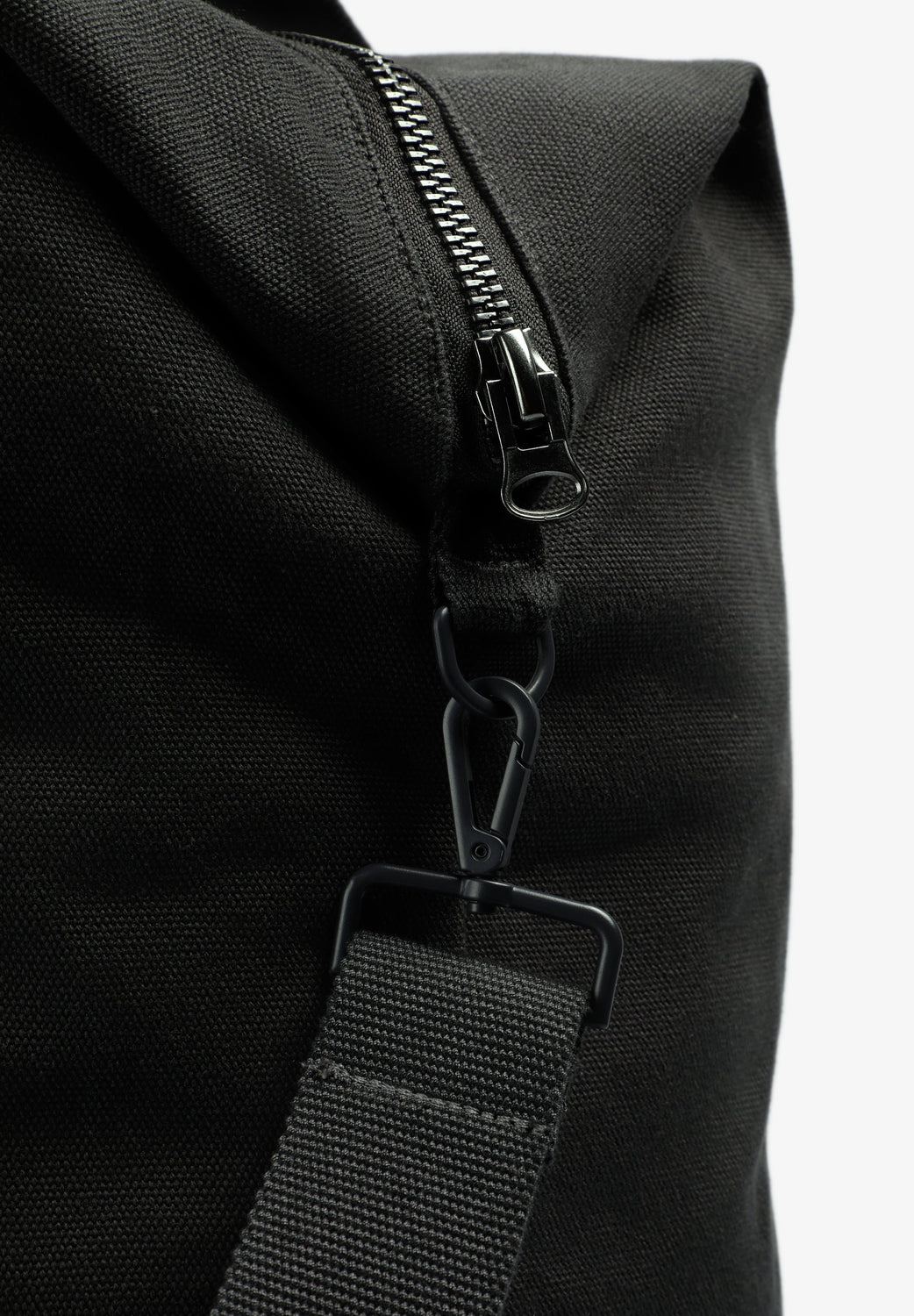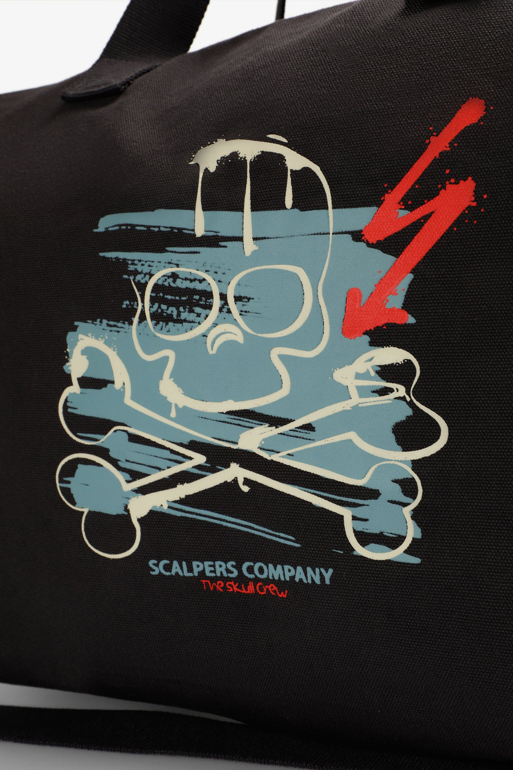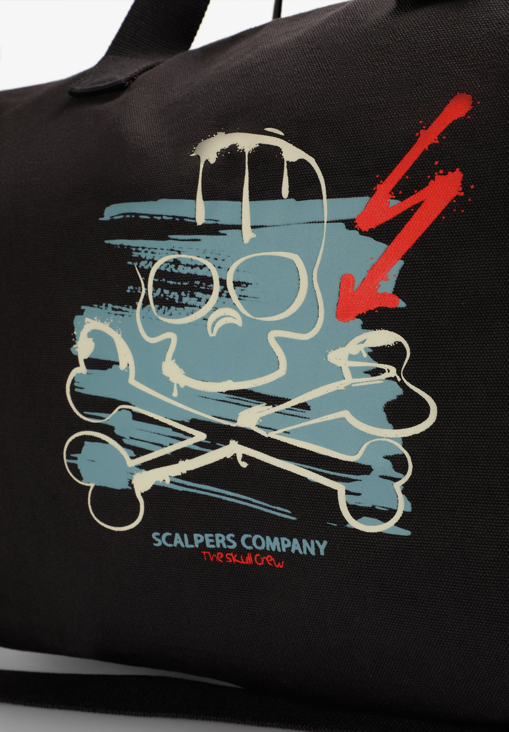 Bolsa confecionada em 100% algodão. Dupla alça curta. Alça comprida removível. Padrão frontal com skull e logótipo em contraste. Fecho de correr.