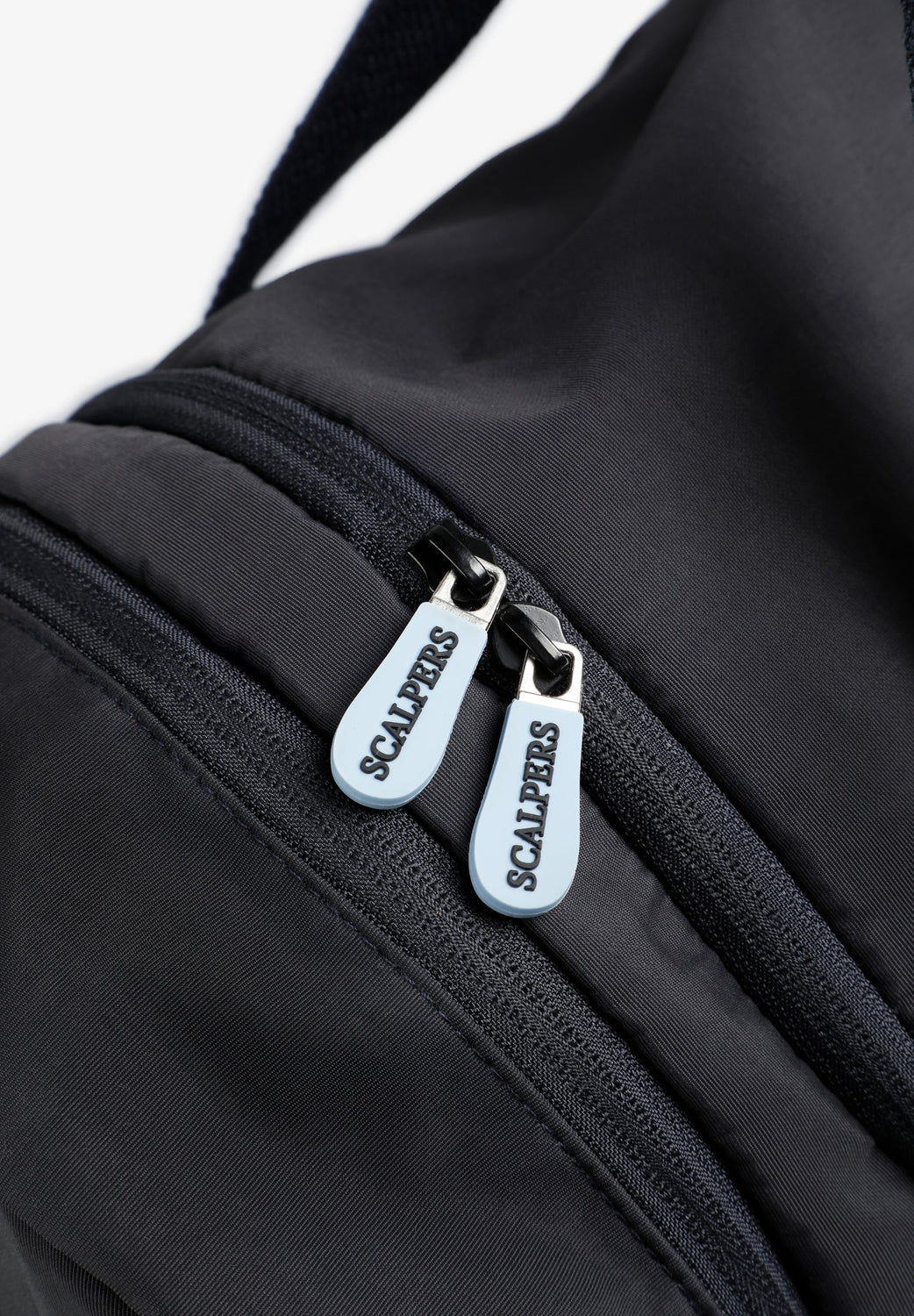 Bolsa confecionada em tecido técnico. Compartimento principal com fecho de zip. Um bolso lateral com fecho de correr. Alça curta principal de ombro e alça comprida removível. Padrão frontal com logótipo e skull. Pormenor de logótipo no fecho de correr.