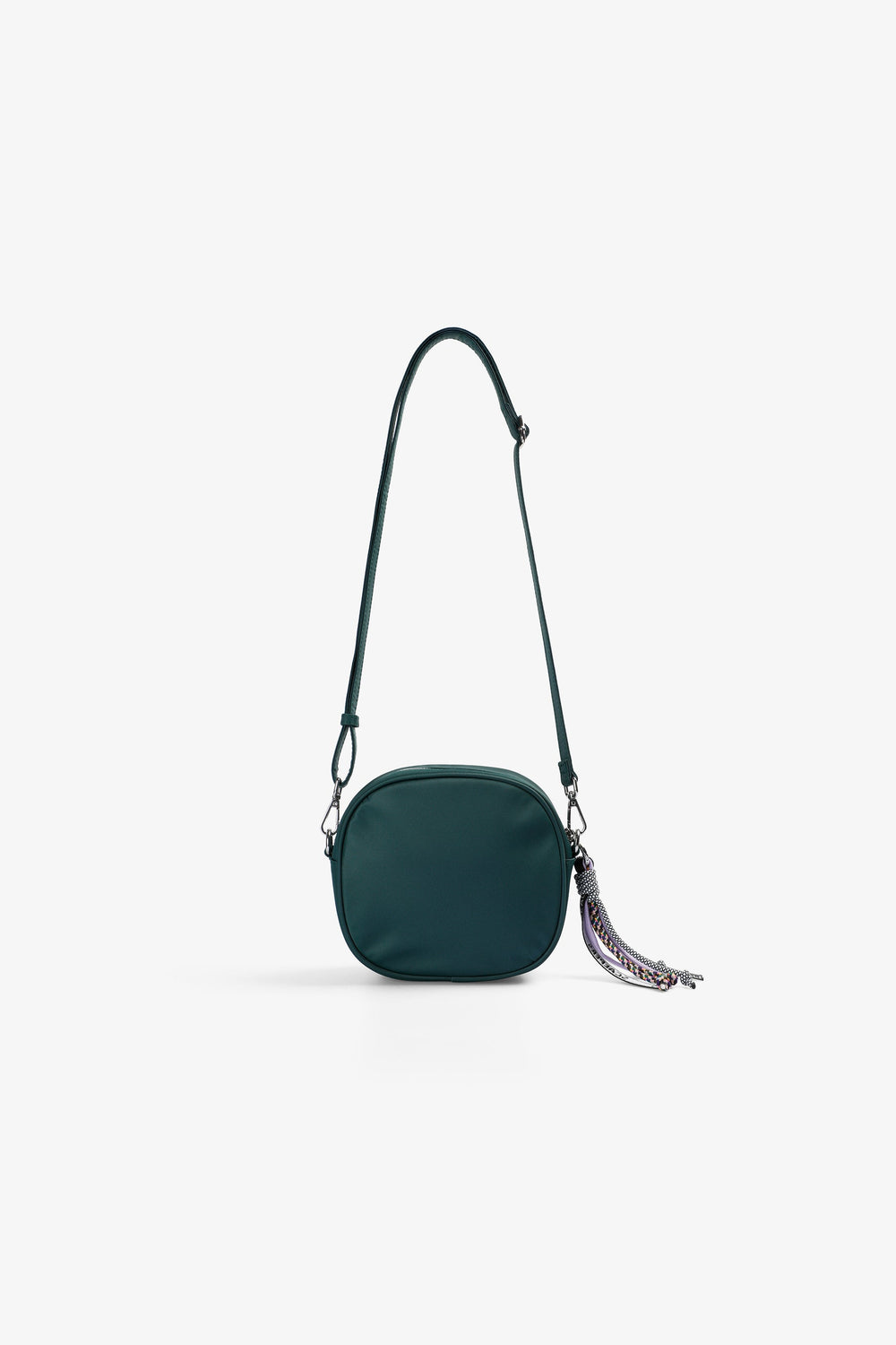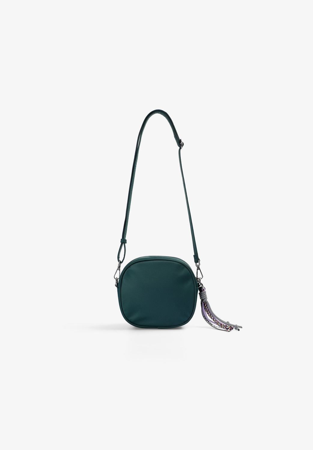 Bolsa confecionada em 100% nylon com forro de algodão. Alça a tiracolo ajustável e removível. Bolsos interiores. Pormenor de etiqueta com monograma bordado à frente. Fecho com zip. Pormenor de charm removível no fecho.