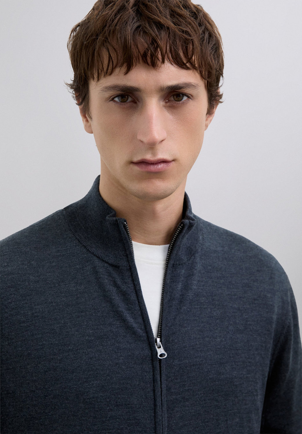 Cardigan confecionada em 100% lã merino. Fecho de correr. Manga comprida. Regular fit. Acabamentos em nervuras.