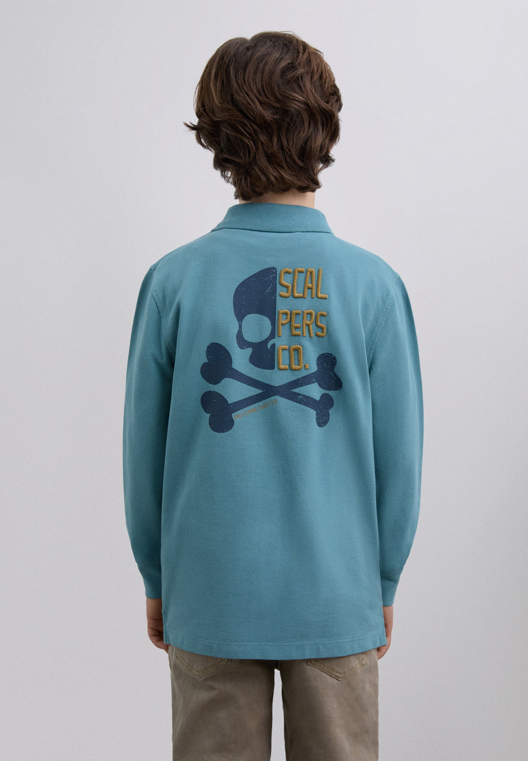 Camisa polo confecionada em 100% algodão BCI. Regular fit. Manga comprida. Colarinho clássico com botões. Logótipo bordado atrás e padrão com skull. Pormenor de remendo bordado frontal interior.