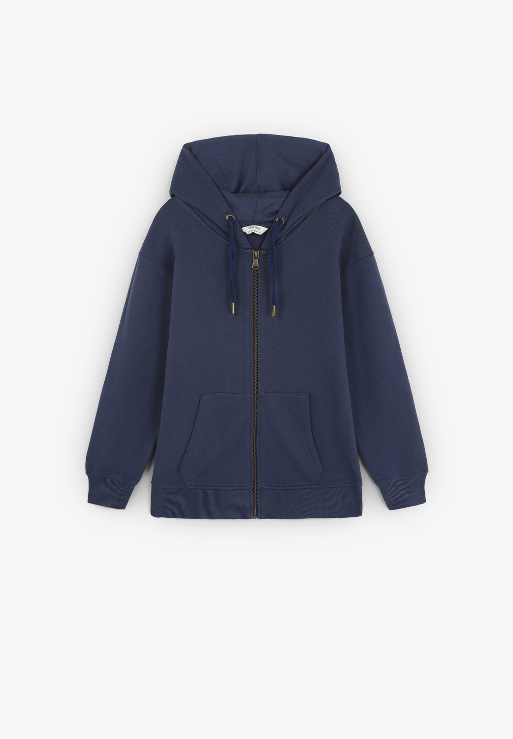 Sweatshirt confecionada em 100% algodão BCI. Capuz. Manga comprida. Acabamentos em nervuras. Fecho de correr à frente e bolsos à frente. Logótipo bordado atrás.