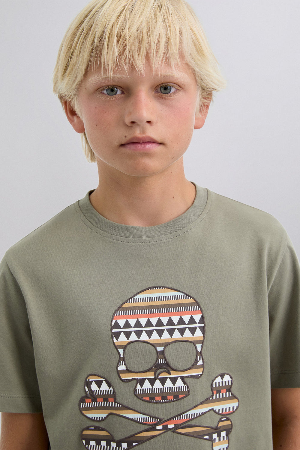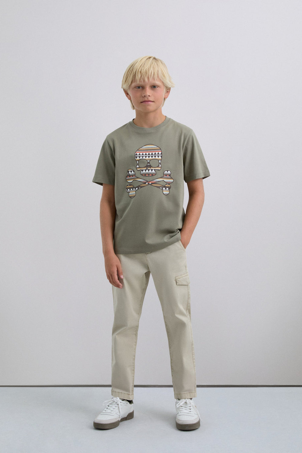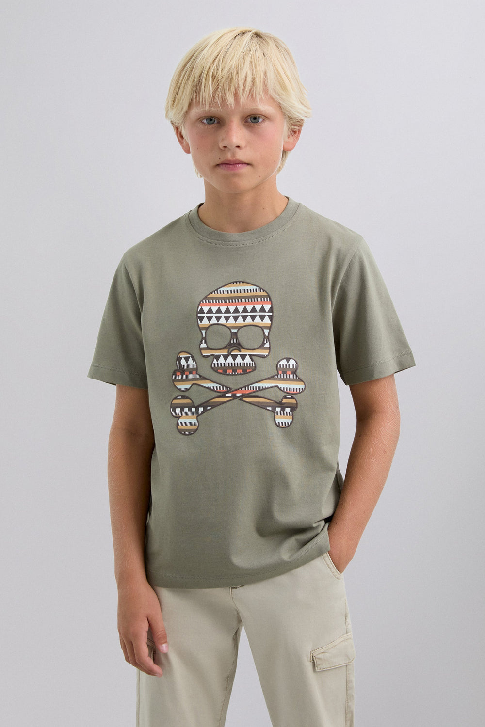 T-shirt com skull com padrão. Confecionada em 100% algodão BCI. Corte Regular Fit. Decote redondo. Manga curta.