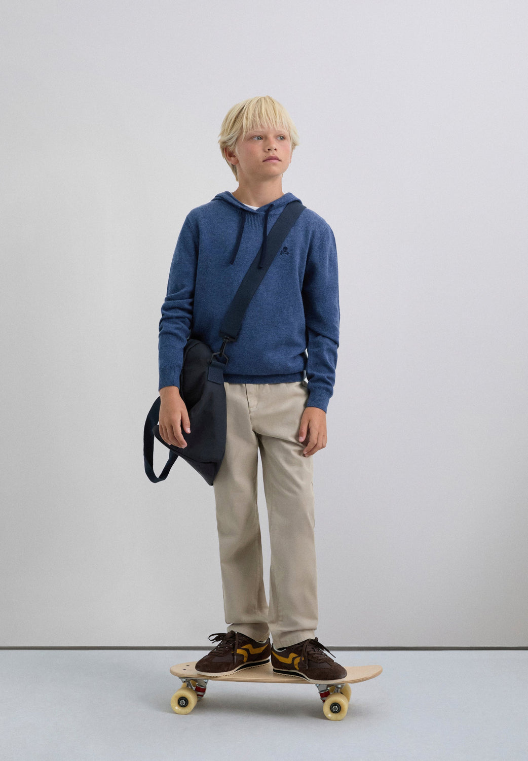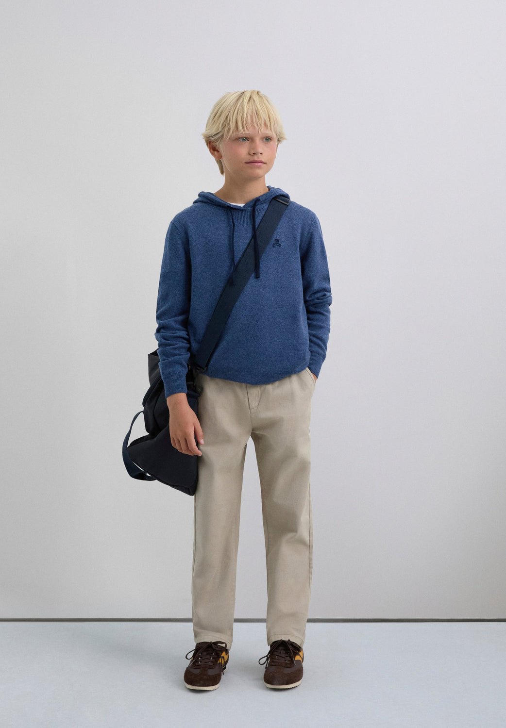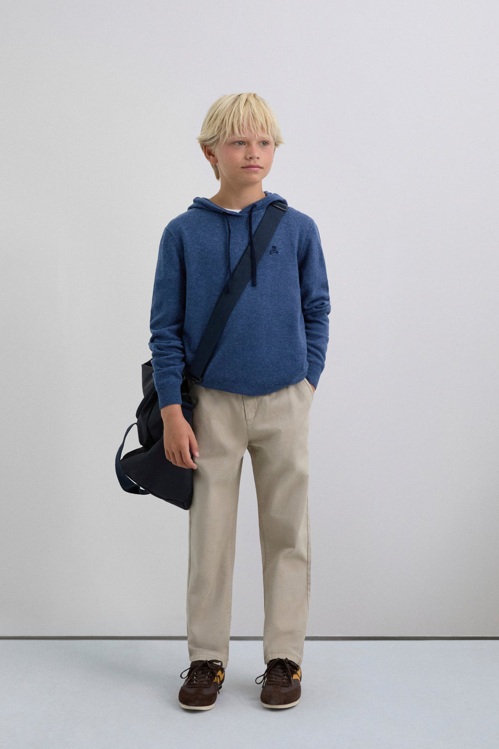 Sweater com capuz e pormenores em contraste. Confecionada em mistura de lã e viscose Corte regular fit. Gola com capuz ajustável. Manga comprida terminada com punhos em contraste. Pormenor de skull bordada em contraste.