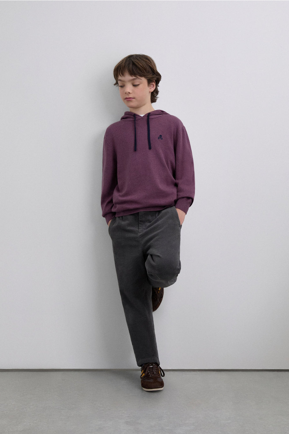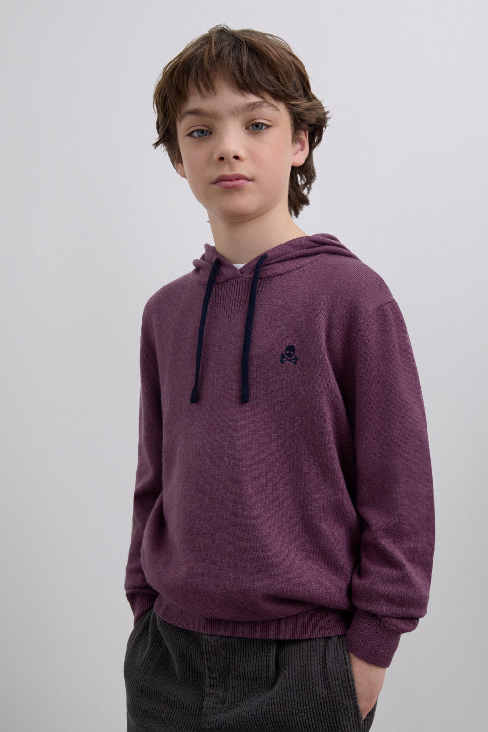 Sweater com capuz e pormenores em contraste. Confecionada em mistura de lã e viscose Corte regular fit. Gola com capuz ajustável. Manga comprida terminada com punhos em contraste. Pormenor de skull bordada em contraste.