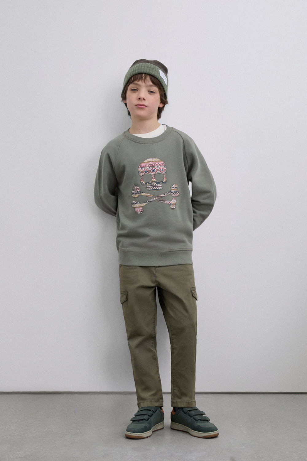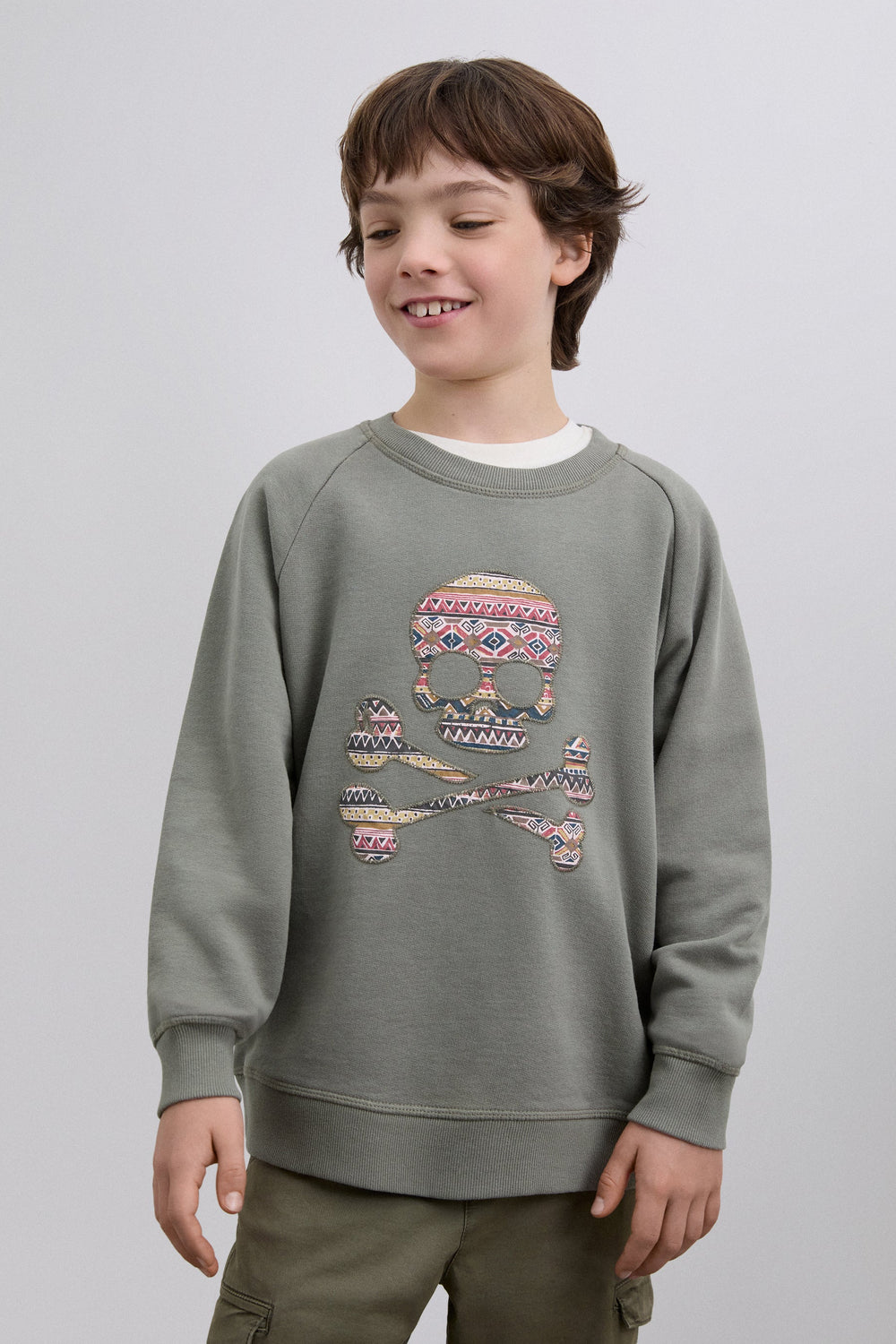 Sweatshirt confecionada em 100% algodão BCI. Regular fit. Decote redondo. Manga comprida. Padrão frontal com skull. Acabamentos em nervuras.