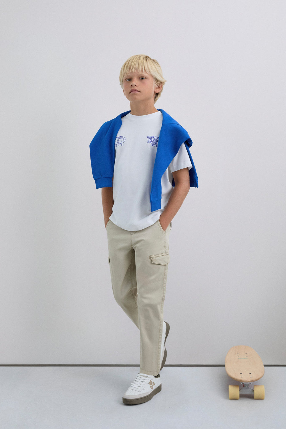 T-shirt confecionada em 100% algodão orgânico. Corte regular fit, decote redondo e manga curta. Padrão atrás e frontal com logótipo.