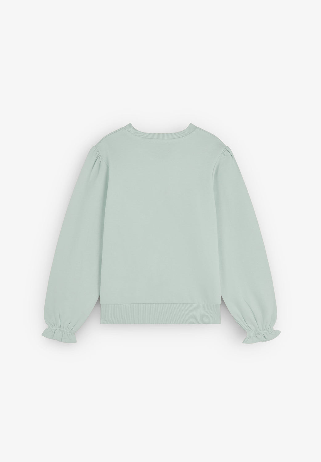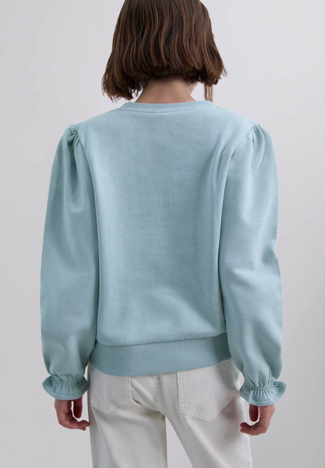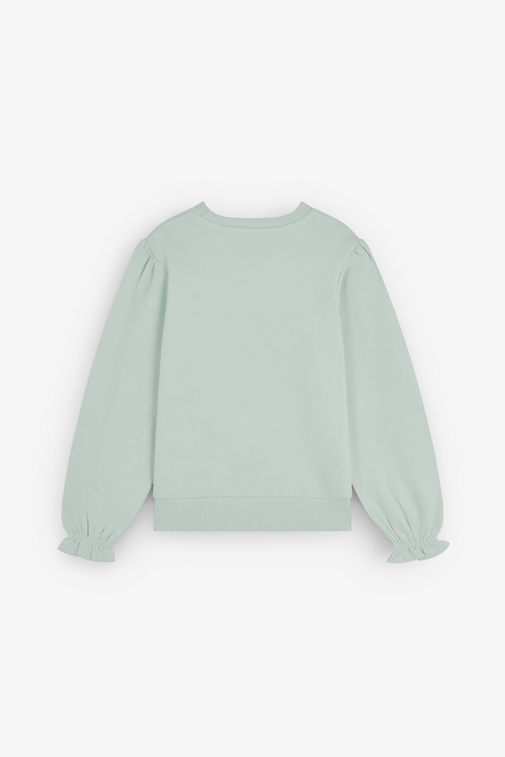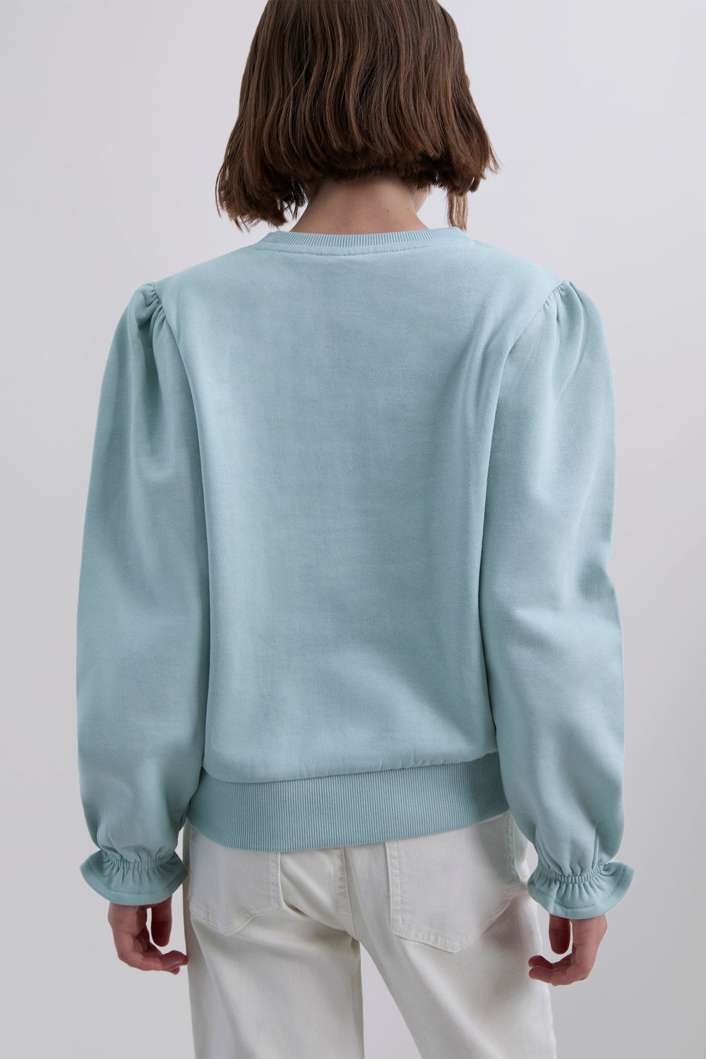 Sweatshirt confecionada em 100% algodão BCI. Decote redondo. Logótipo bordado à frente. Manga comprida. Pormenor de franzidos nos punhos elásticos