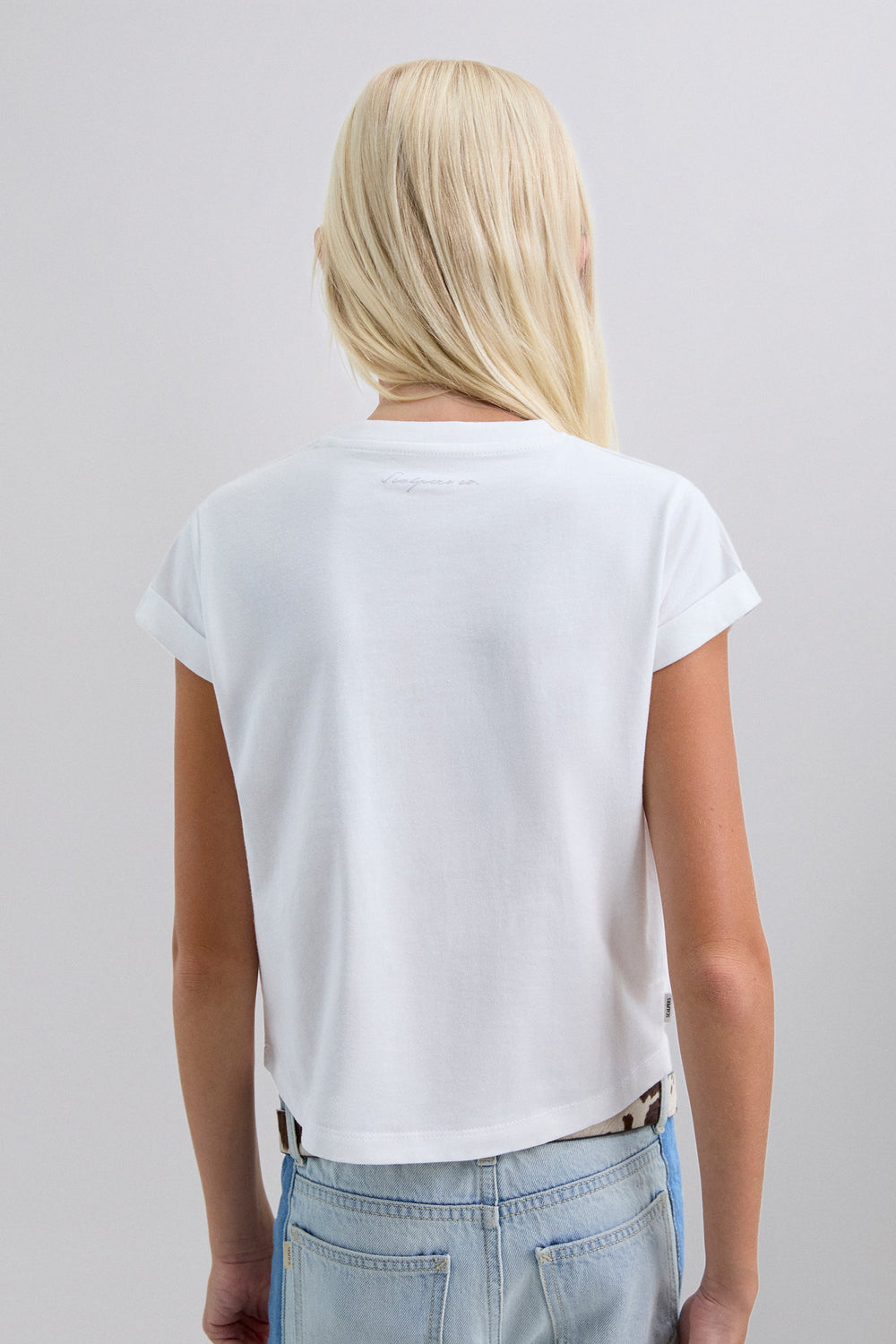 T-shirt confecionada em 100% algodão BCI. Manga curta. Padrão à frente e atrás com logótipo.