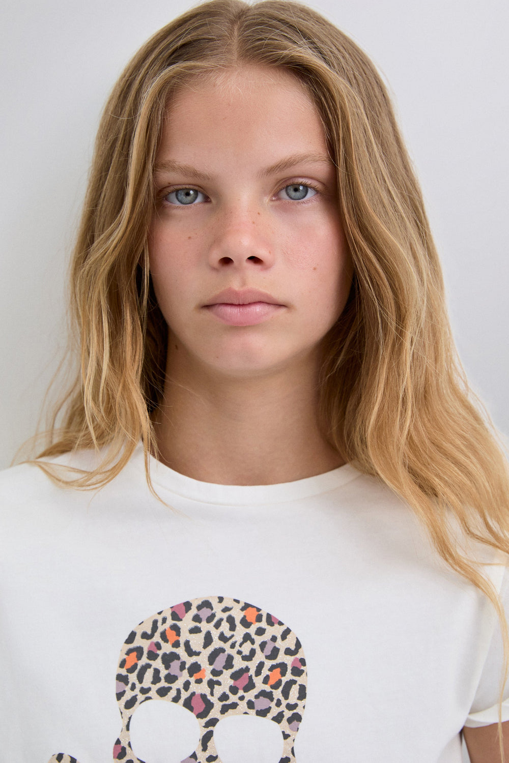 T-shirt confecionada em 100% algodão BCI. Corte regular fit, decote redondo e manga curta. Pormenor de skull frontal em contraste.