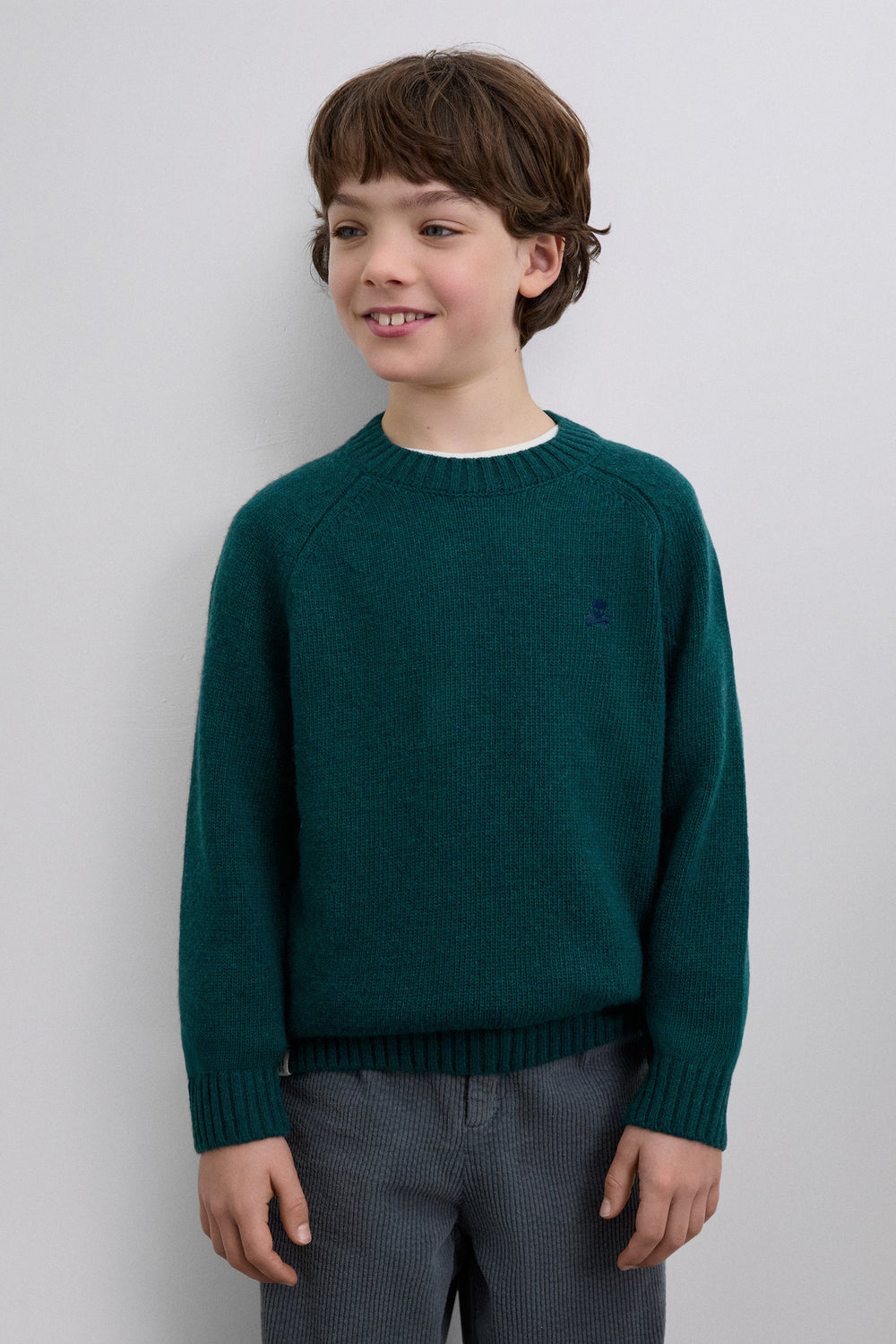 Sweater de manga comprida. Decote redondo. Regular fit. Acabamentos em nervuras. Logótipo bordado à frente.