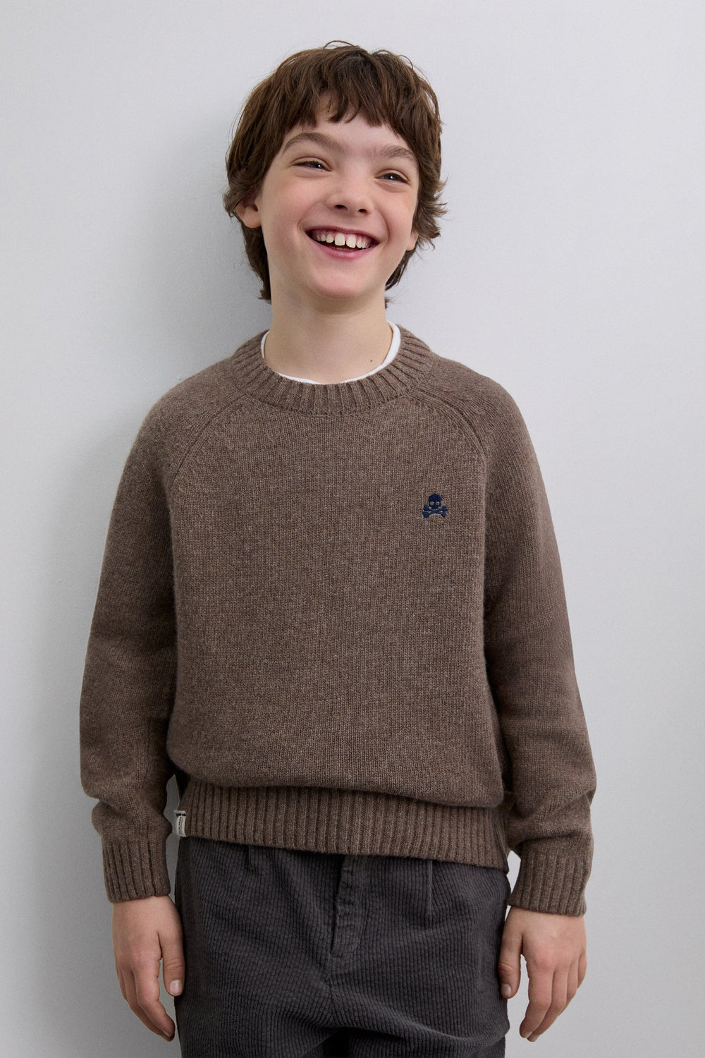 Sweater de manga comprida. Decote redondo. Regular fit. Acabamentos em nervuras. Logótipo bordado à frente.