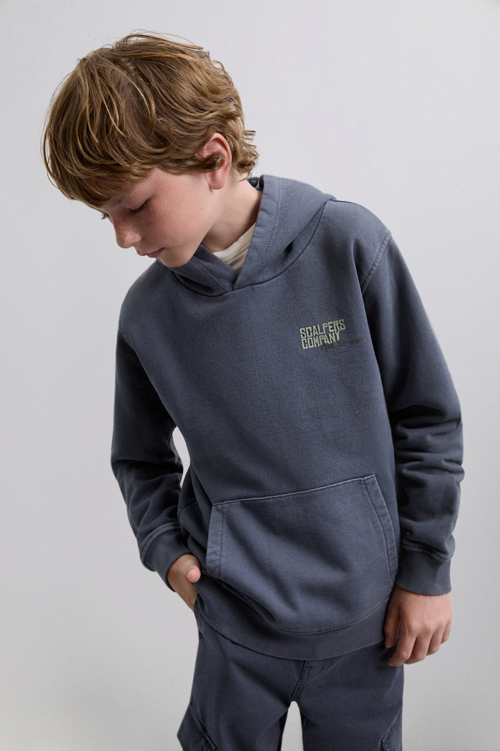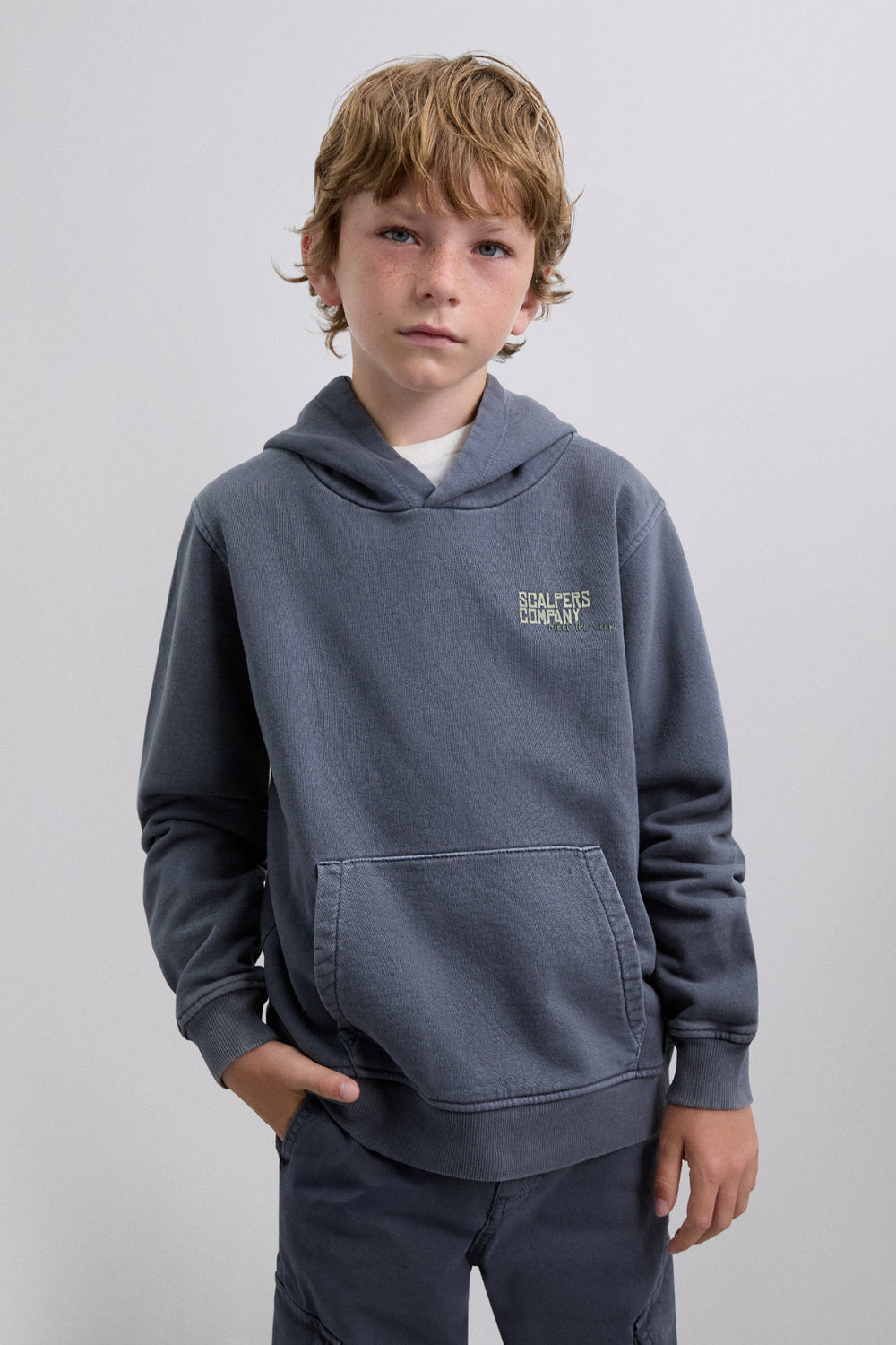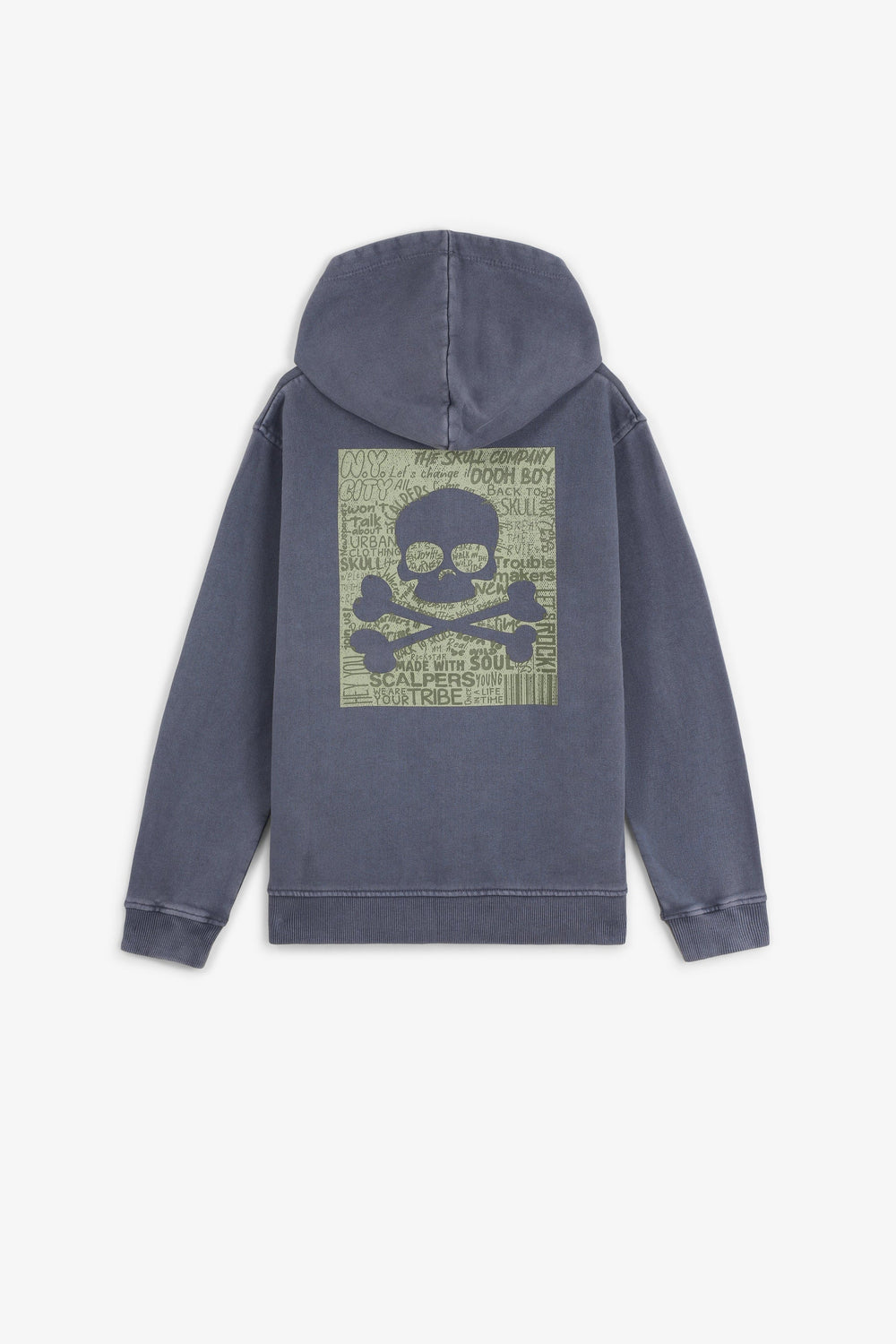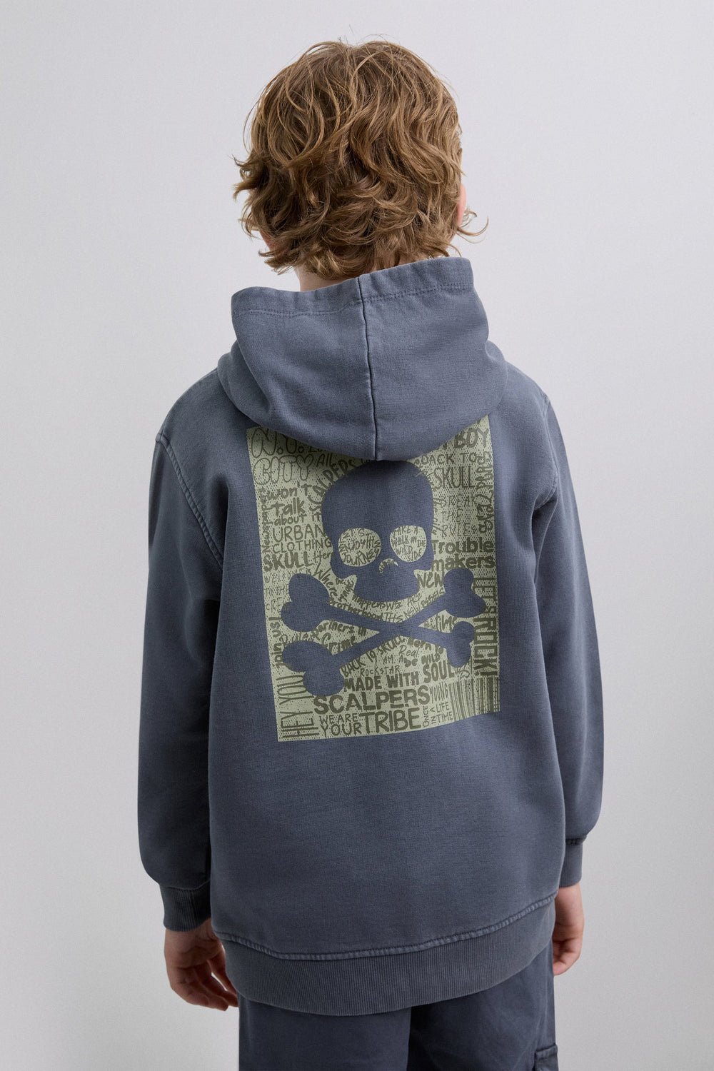 Sweatshirt com corte confecionada em 100% algodão BCI. Padrão no peito e atrás. Manga comprida com acabamentos em nervuras. Bolsos tipo canguru à frente. Pormenor de etiqueta de skull na cintura.