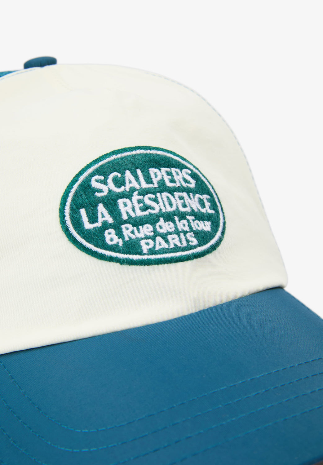 Boné estilo trucker confecionado em mistura de tecido técnico com parte traseira de rede. Pala em contraste. Detalhe de remendo bordado à frente. Fecho atrás ajustável.