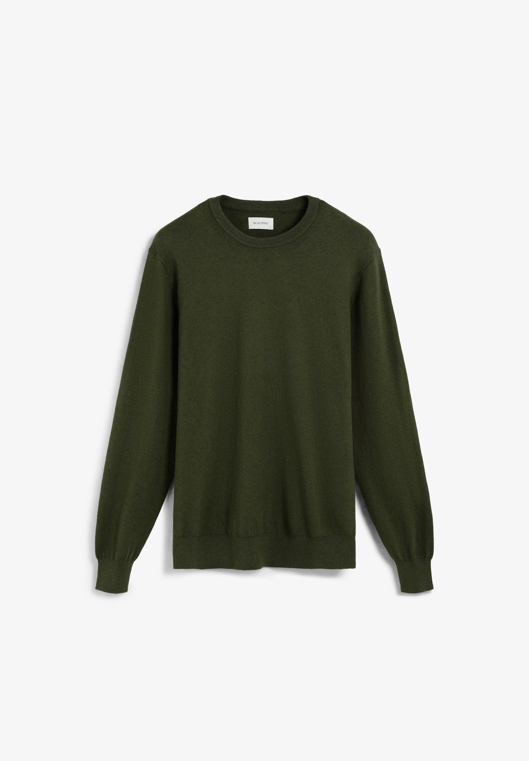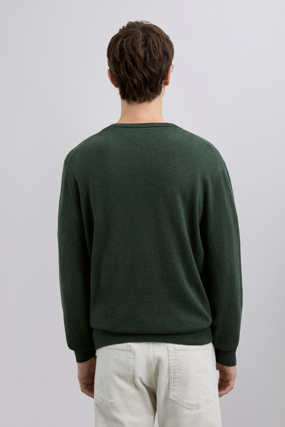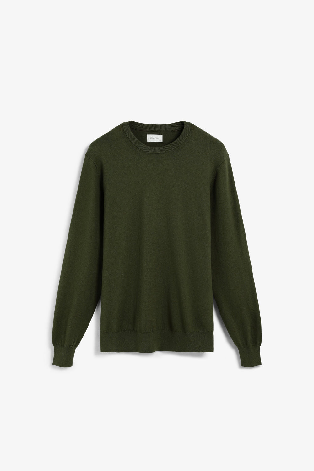 Sweater confecionada em algodão e caxemira. Regular fit. Decote redondo. Manga comprida. Acabamentos em nervuras.