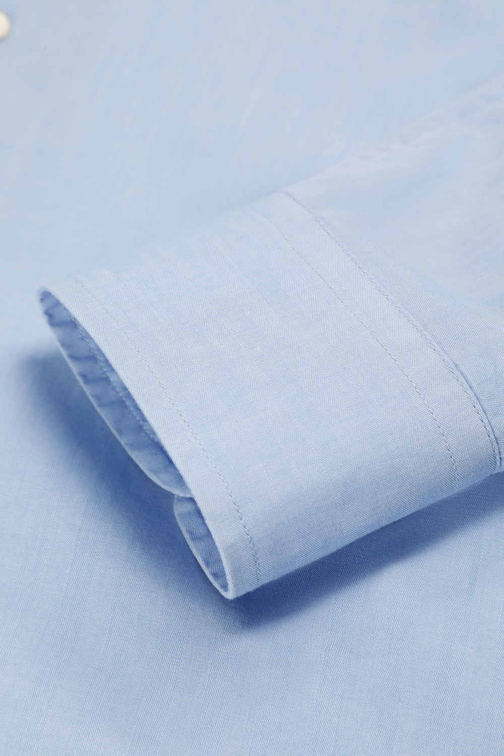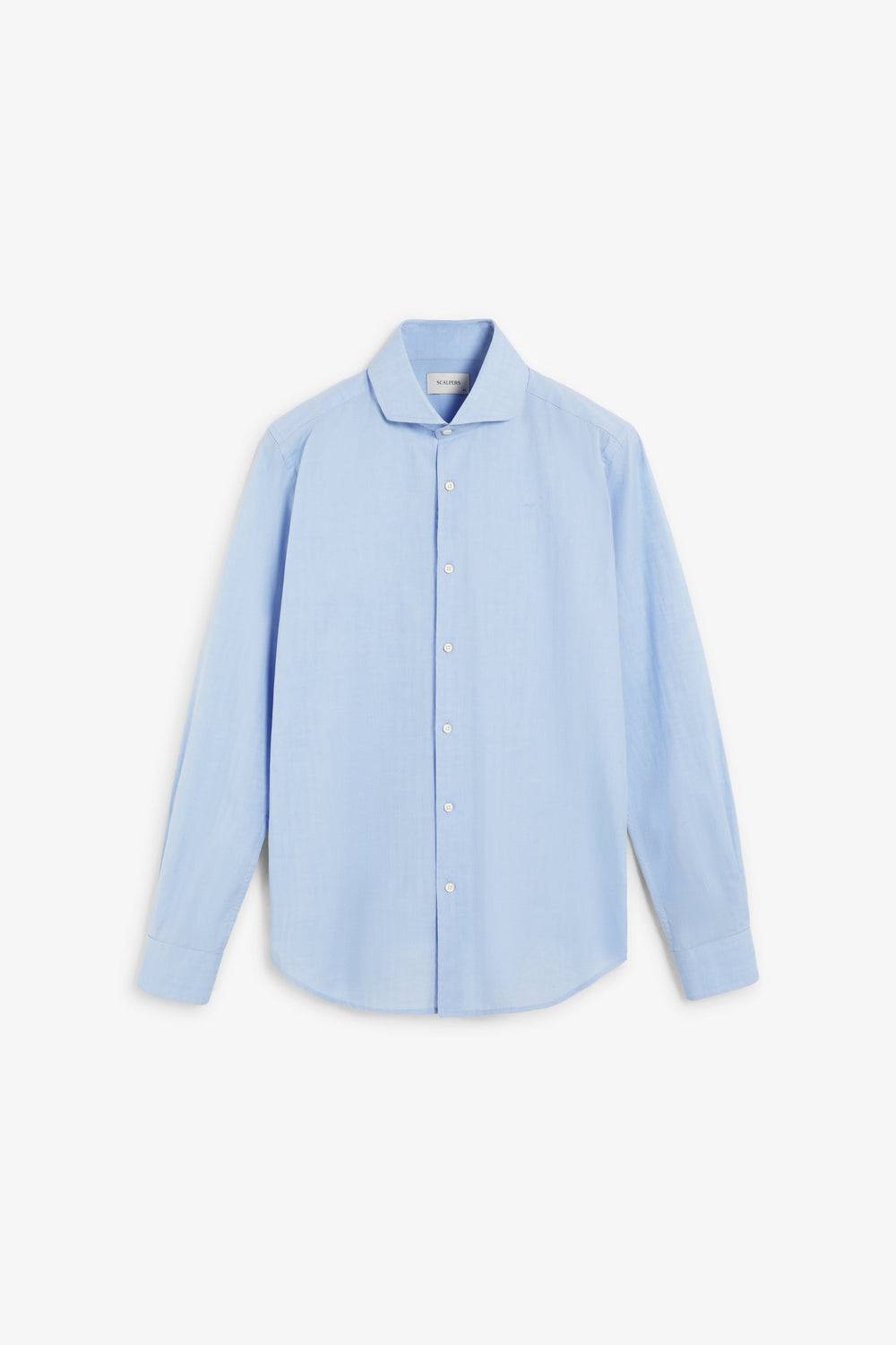 Camisa confecionada em tecido 100% algodão BCI. Regular fit. Manga comprida. Fecho frontal e punhos com abotoadura.