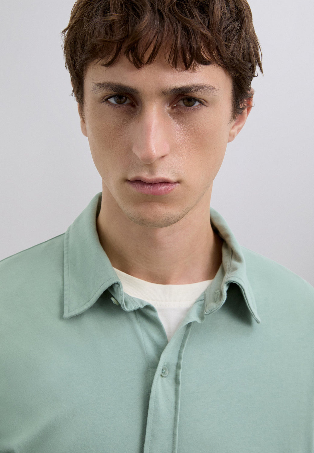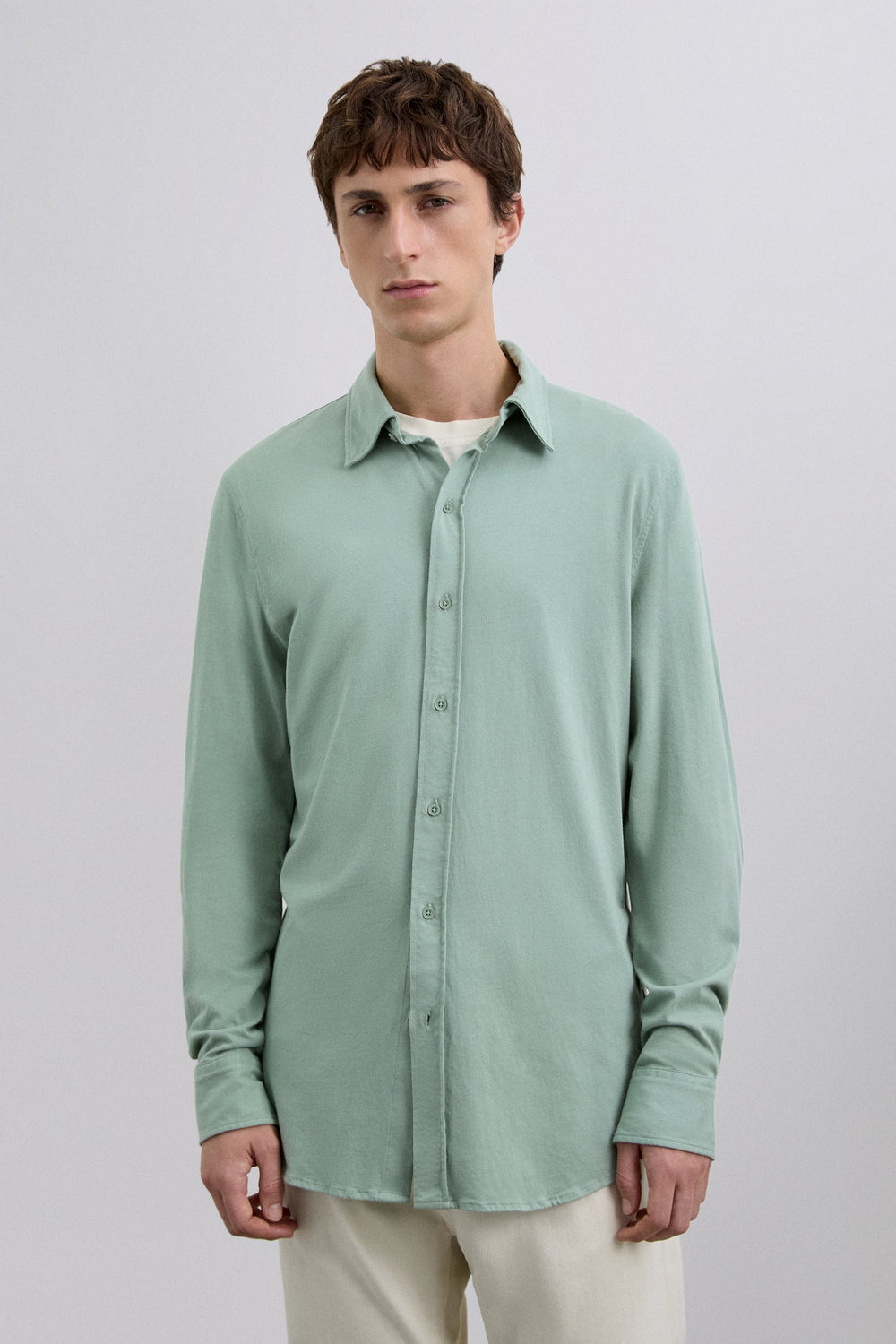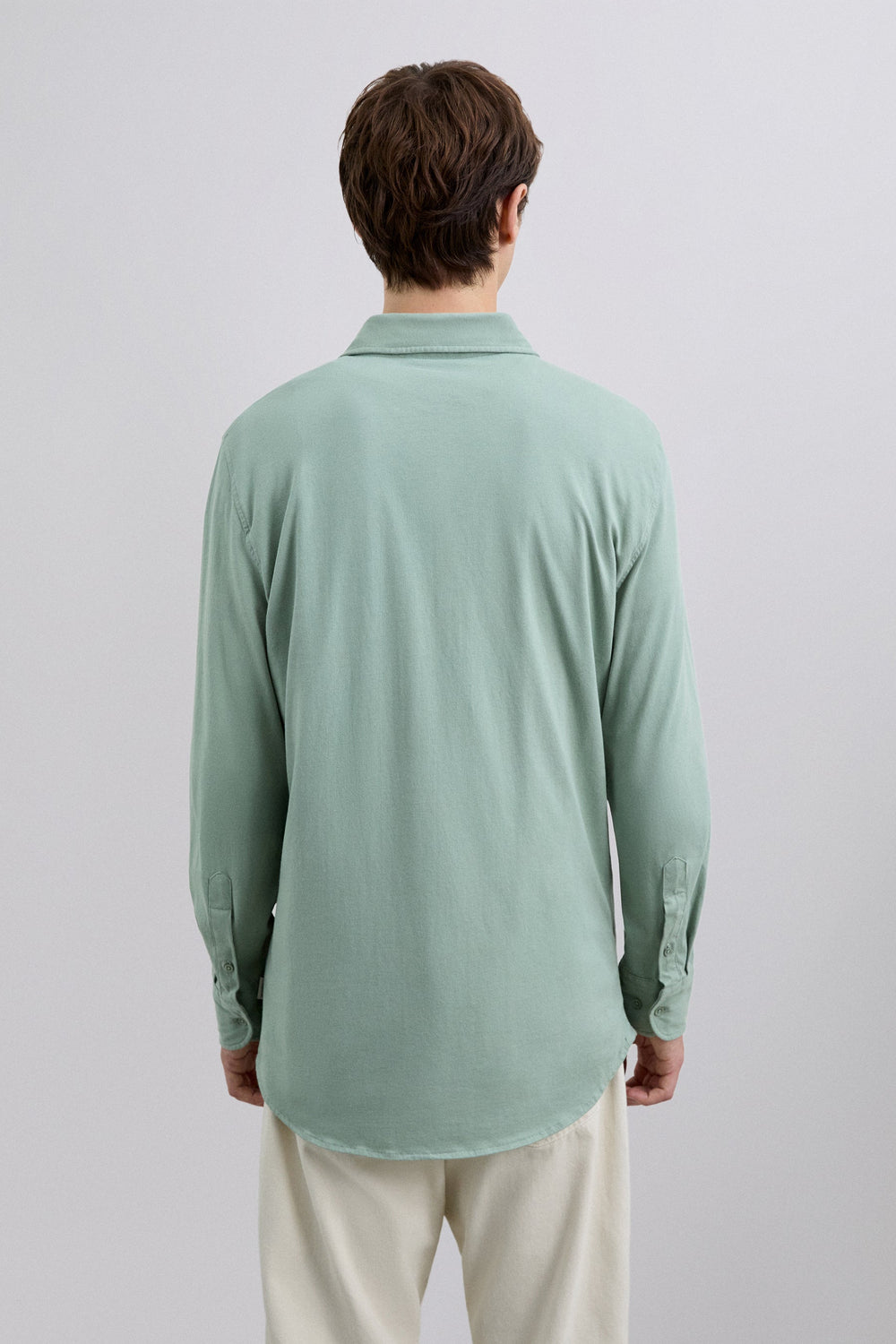 Camisa confecionada em tecido 100% algodão. Regular fit. Manga comprida. Colarinho clássico. Fecho frontal e nos punhos com abotoadura.