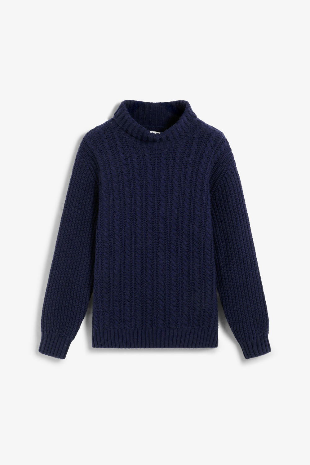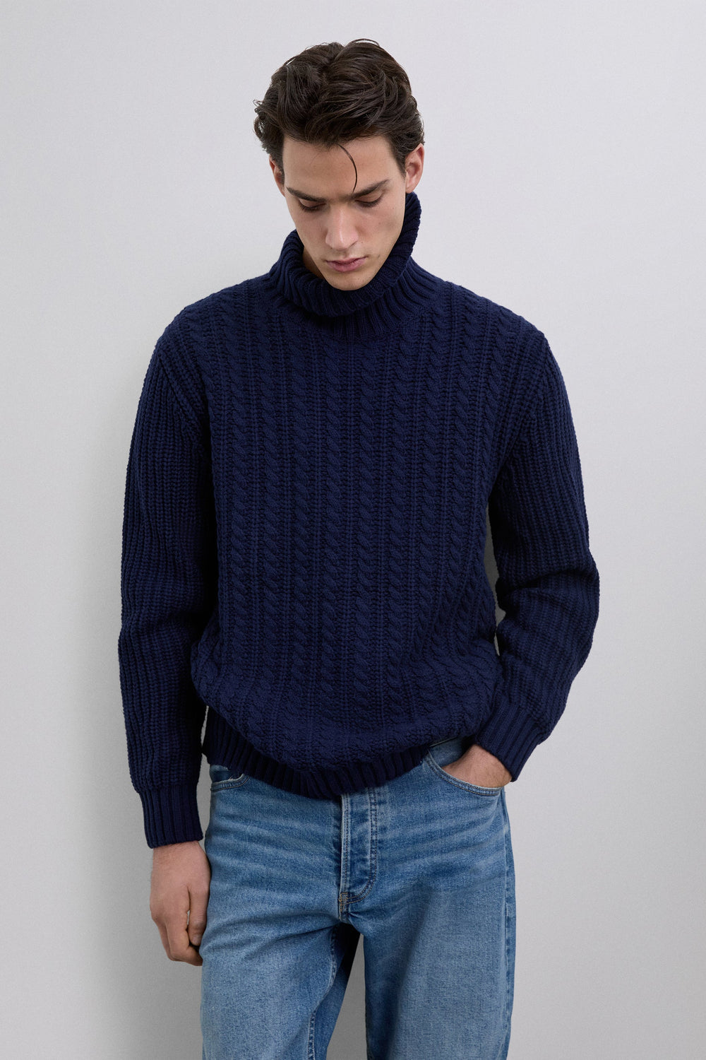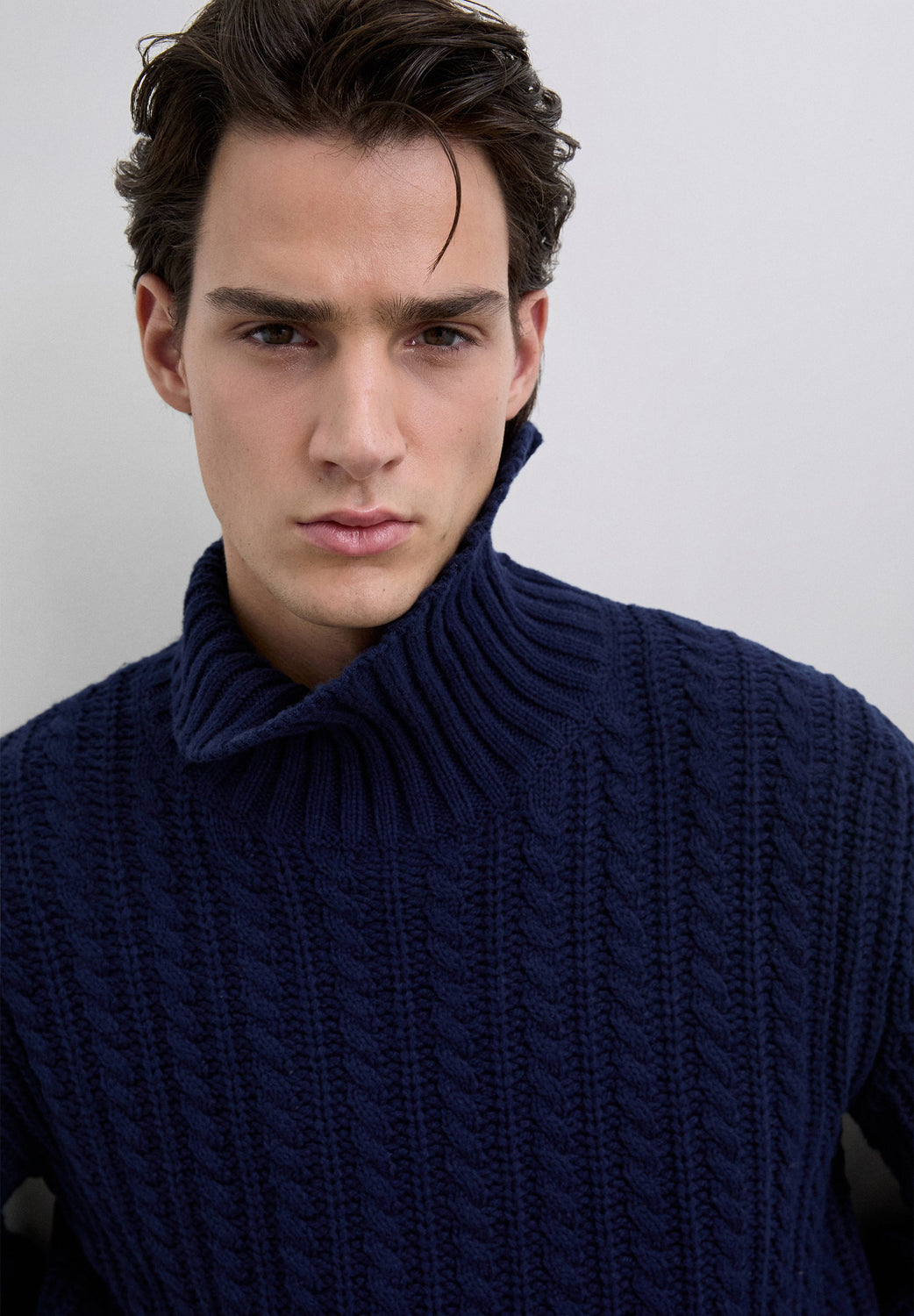 Sweater de malha trançada. Gola alta. Mangas compridas. Corte regular.
