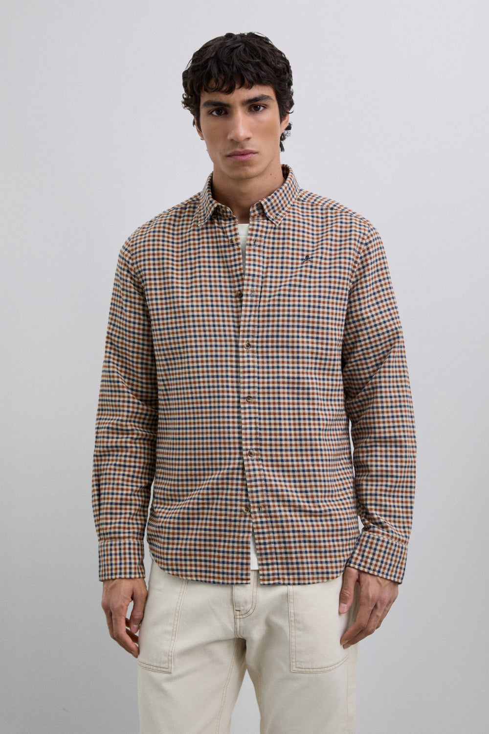 Camisa confecionada em tecido 100% algodão BCI. Regular fit. Gola abotoada. Manga comprida. Punhos com botões. Pormenor de logótipo bordado em contraste no peito.