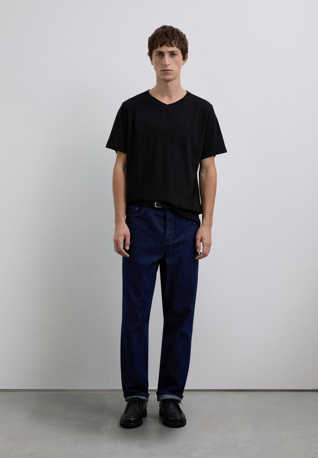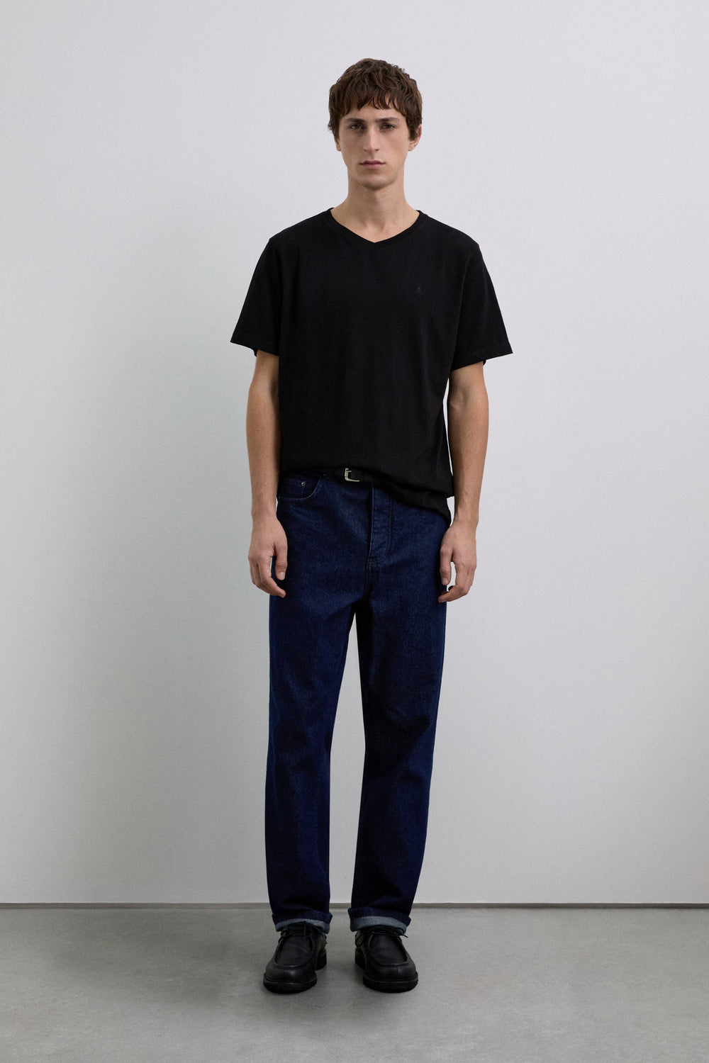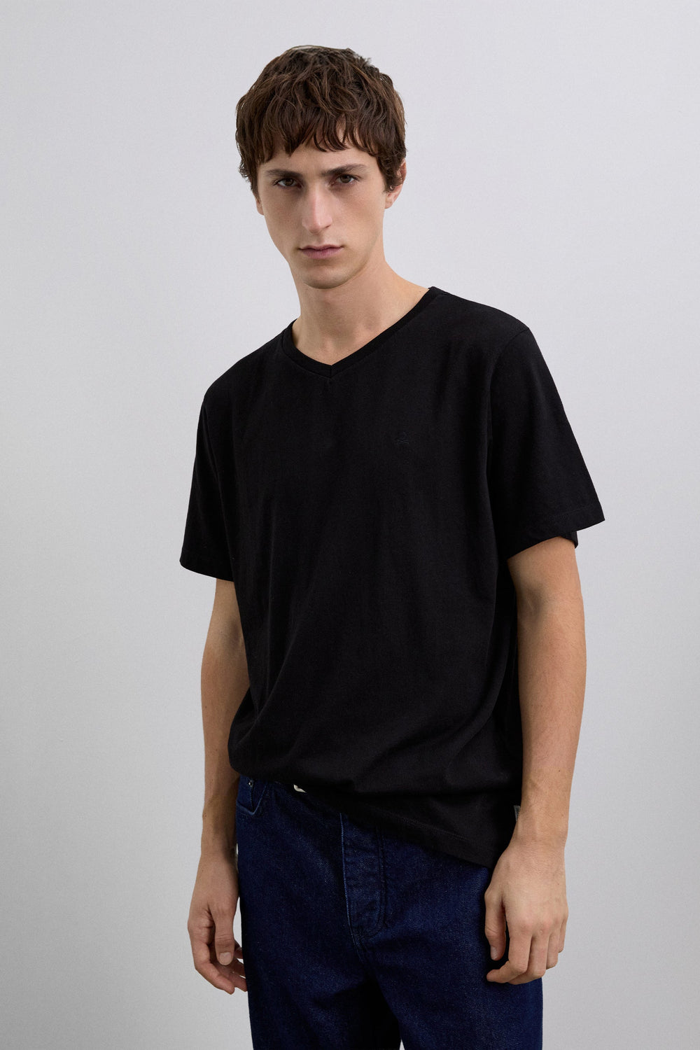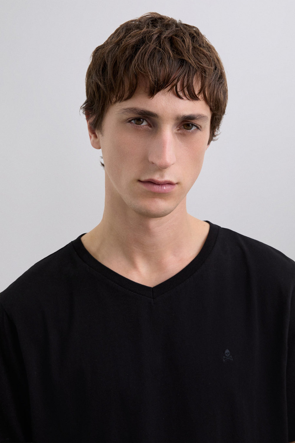T-shirt básica com caveira bordada. Confeccionada em 100% algodão BCI. Corte Regular Fit. Gola em bico. Manga curta.