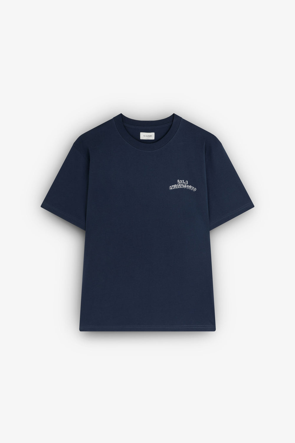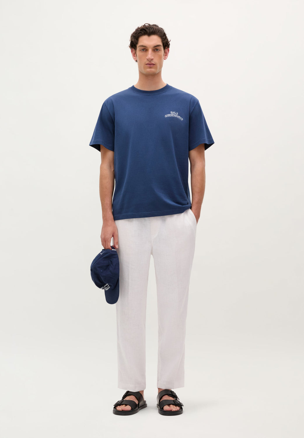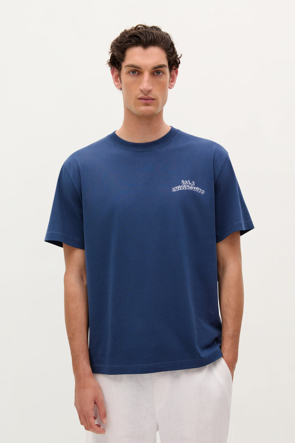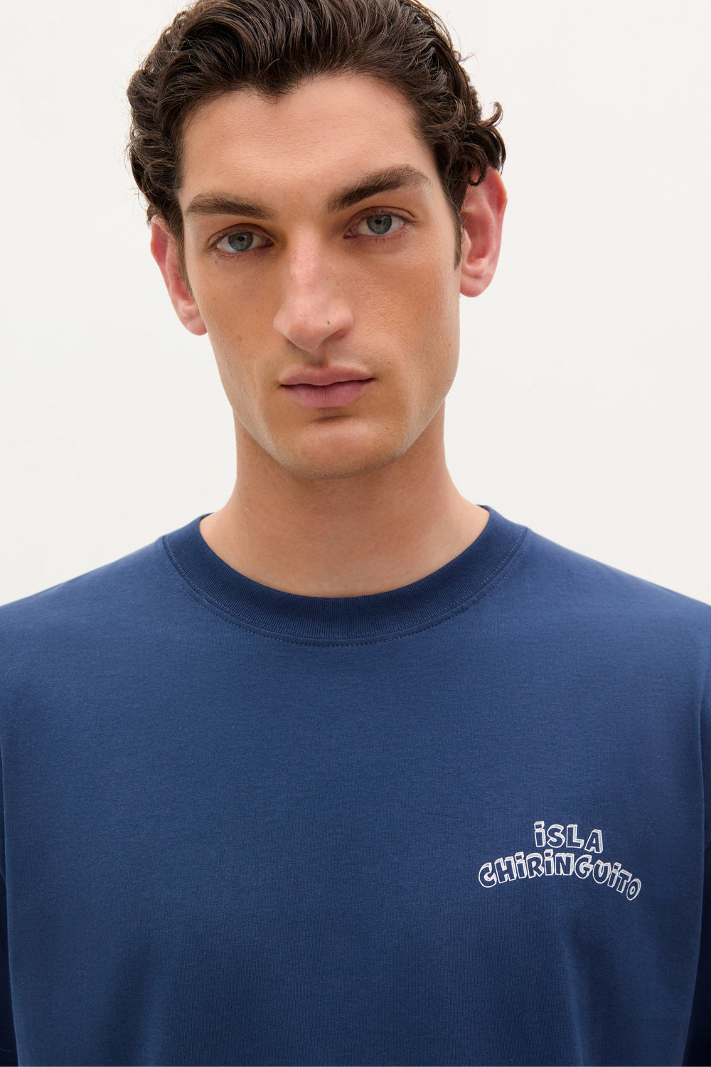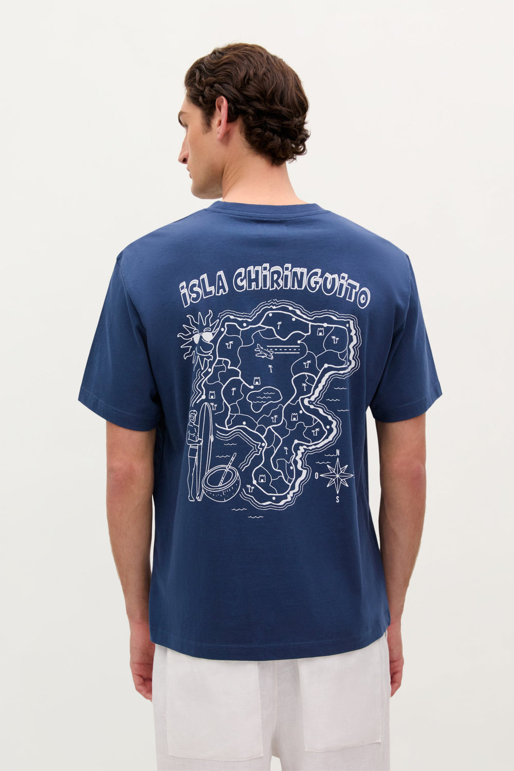 T-shirt confecionada em 100% algodão com padrão nas costas. Corte Regular Fit, decote redondo e manga curta.