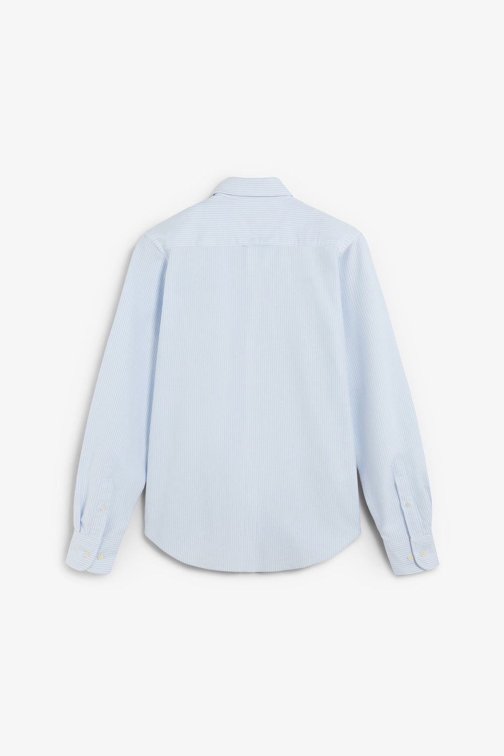 Camisa às riscas confecionada em 100% algodão BCI. Gola clássica, fecho com botões, regular fit, skull no peito em contraste. Acabamento de botões no punho.