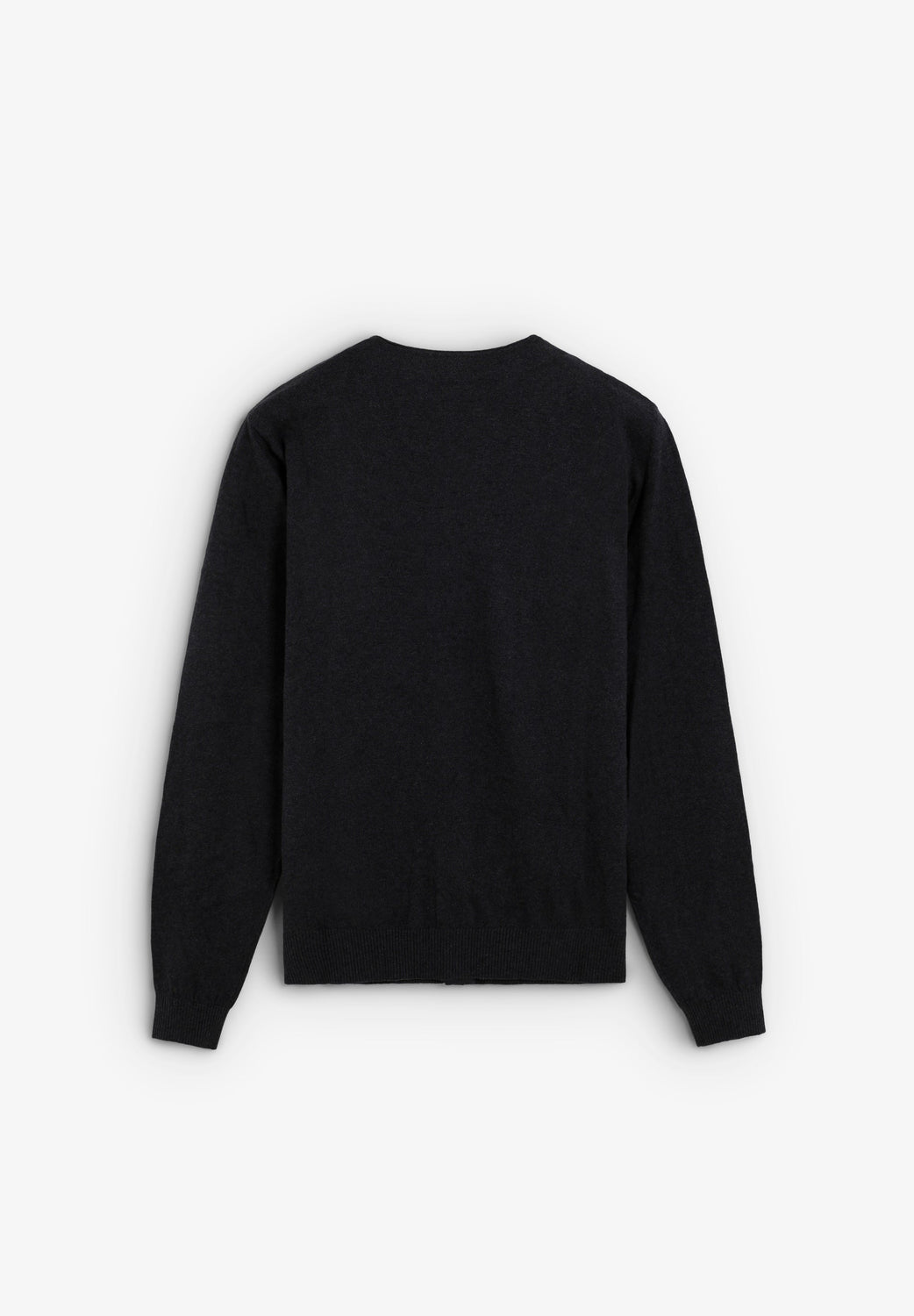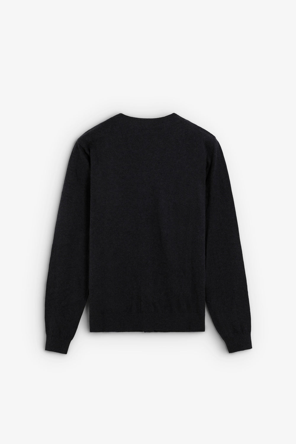 Cardigan confecionado em fiação de caxemira e algodão. Decote em V e manga comprida. Fecho à frente com abotoadura.