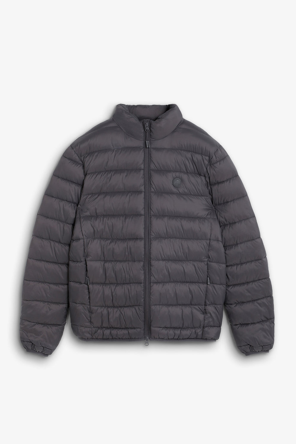 Casaco acolchoado com remendo de skull engomado. Confecionado em nylon recycled com enchimento de poliéster recycled. Corte Regular Fit. Gola subida. Fecho de correr. Bolsos laterais. Manga comprida terminada em elástico.
