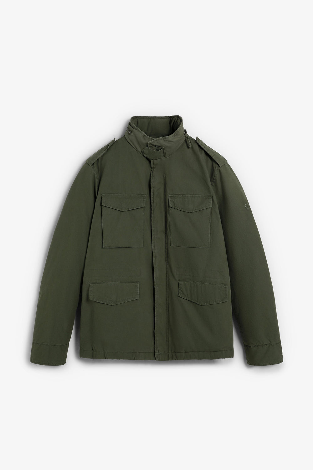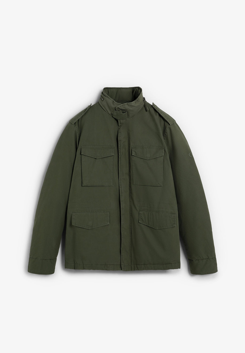 Parka confecionada em algodão BCI. Estilo militar. Quatro bolsos à frente. Pormenor de fecho na gola. Fecho de correr à frente e capuz em contraste oculto na gola. Interior forrado com motivos de textura diamante. Punhos ajustáveis. Pormenor de logótipo alta densidade na manga. Capuz amovível com fecho de correr.