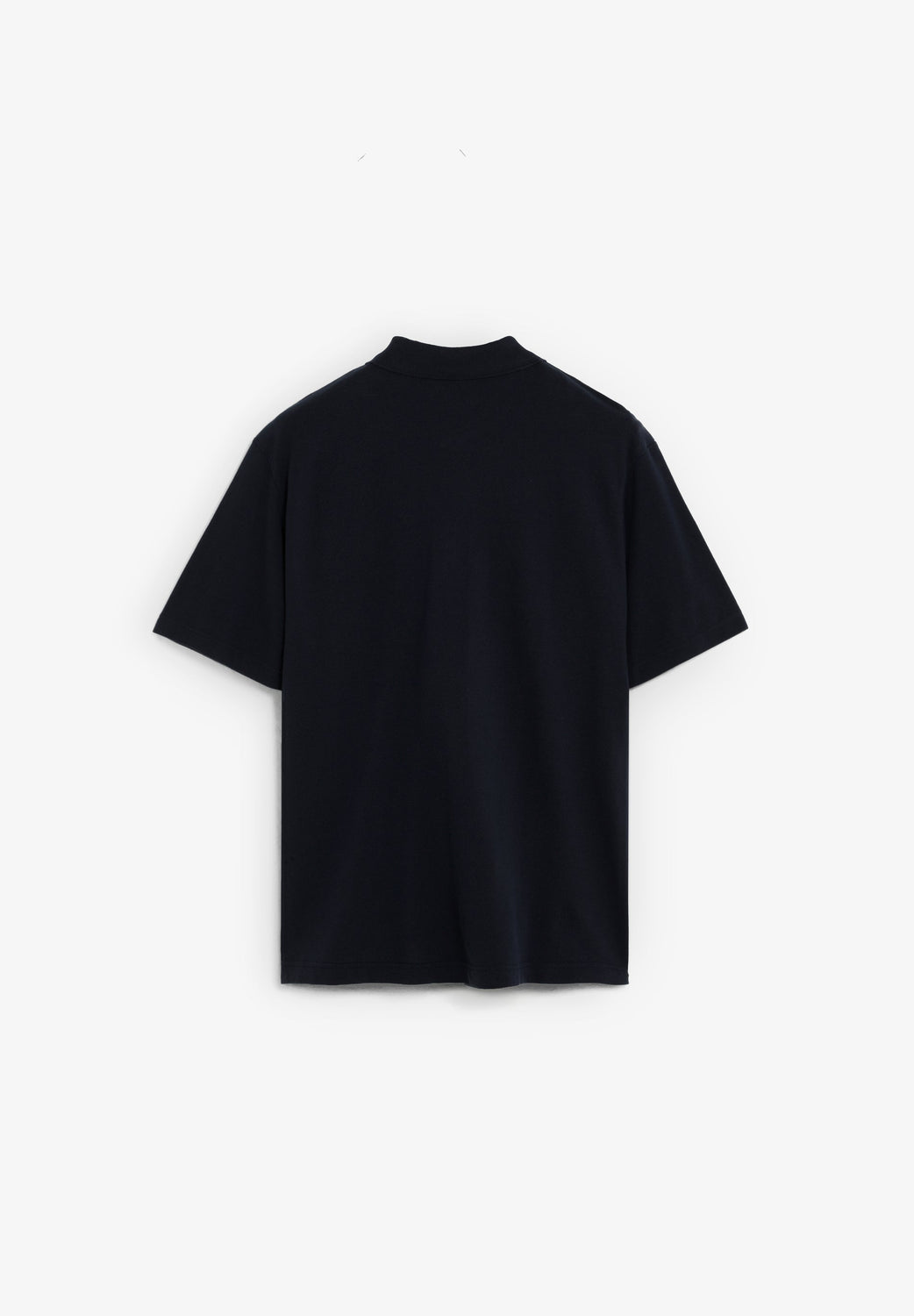 Camisa polo tipo cardigan de manga curta em tecido piqué. Corte relaxado. Peça desbotada. Placket com 6 botões. Bolso aplicado no peito. Gola canelada.