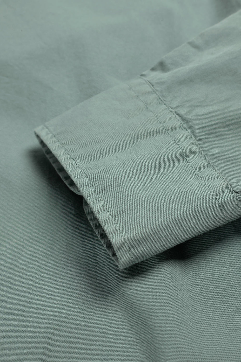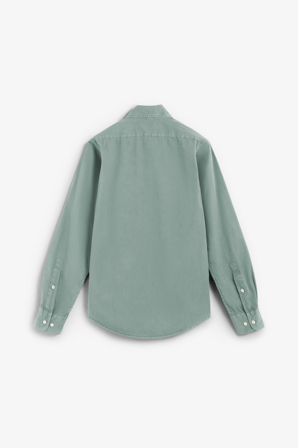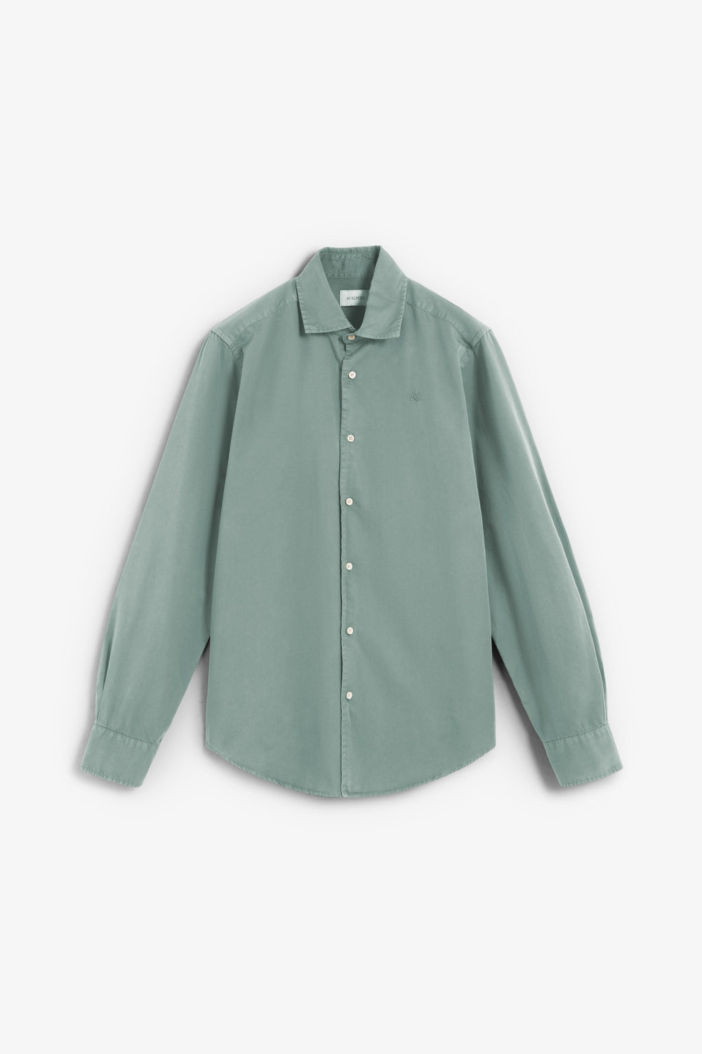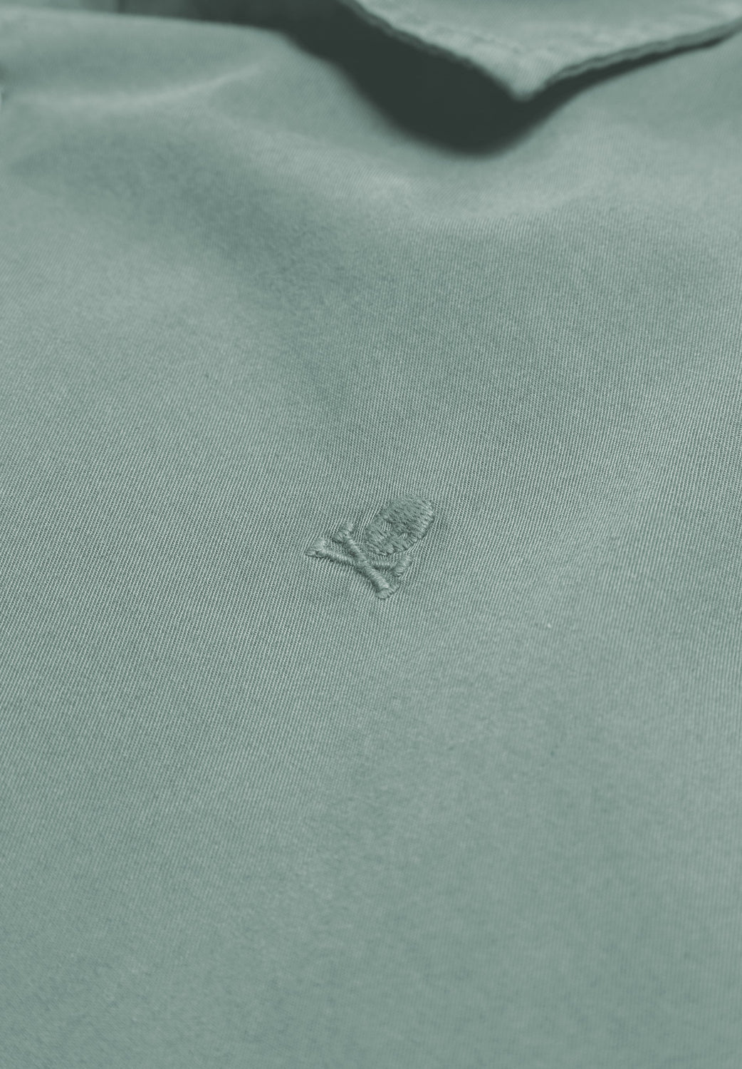 Camisa confecionada em 100% algodão orgânico. Corte regular. Gola italiana. Fecho de botões à frente. Manga comprida com punhos abotoados. Dobra no punho. Pormenor de skull bordada no tom.
