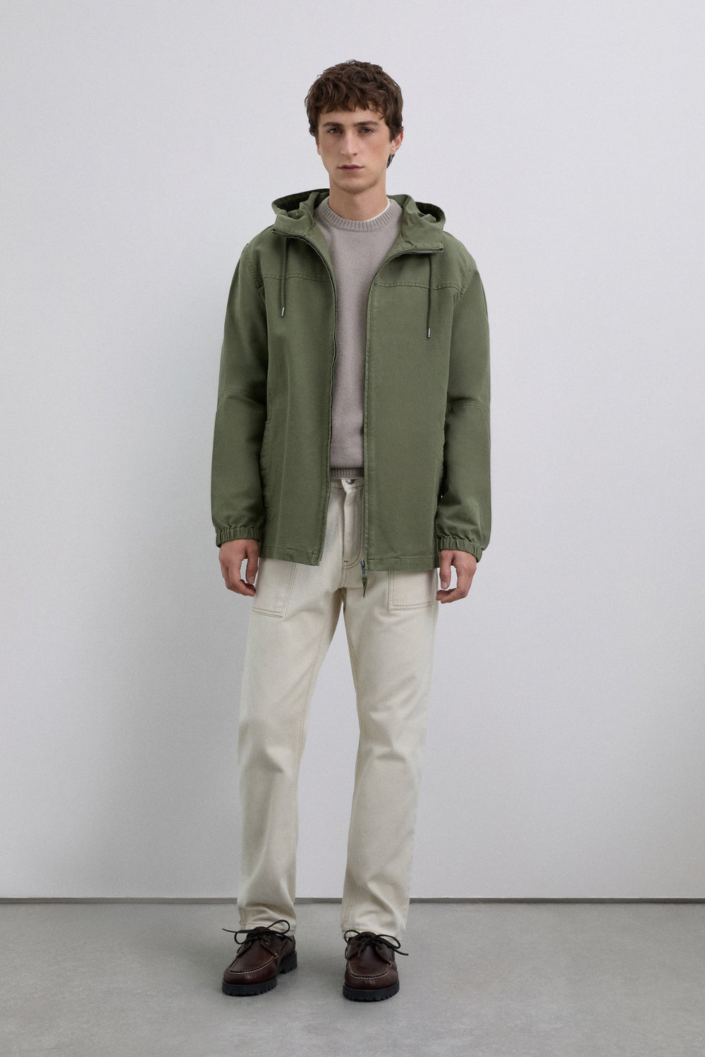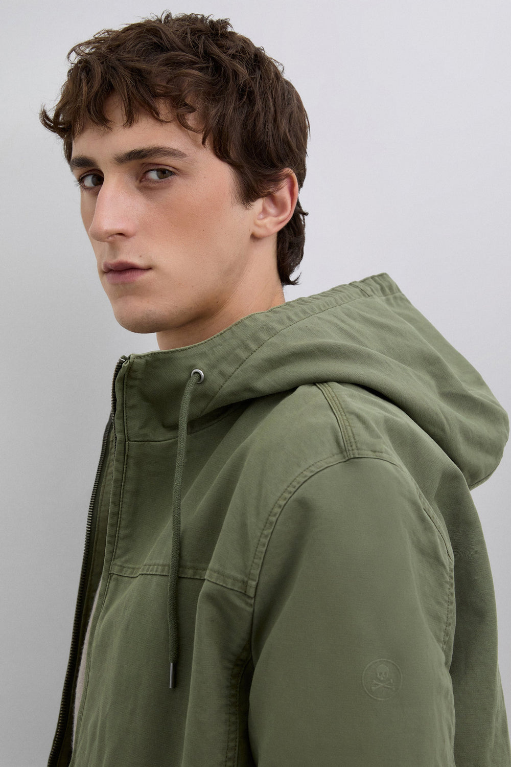 Blusão confecionado em 100% algodão BCI. Bolsos de linhas vivas na lateral. Capuz com cordão ajustável. Fecho de correr e travas de cordão personalizados com logótipo. Pormenor do logótipo como padrão de alta densidade. Manga com punho elástico.